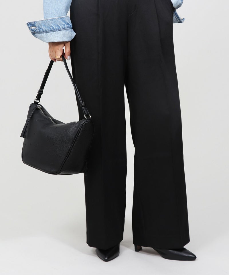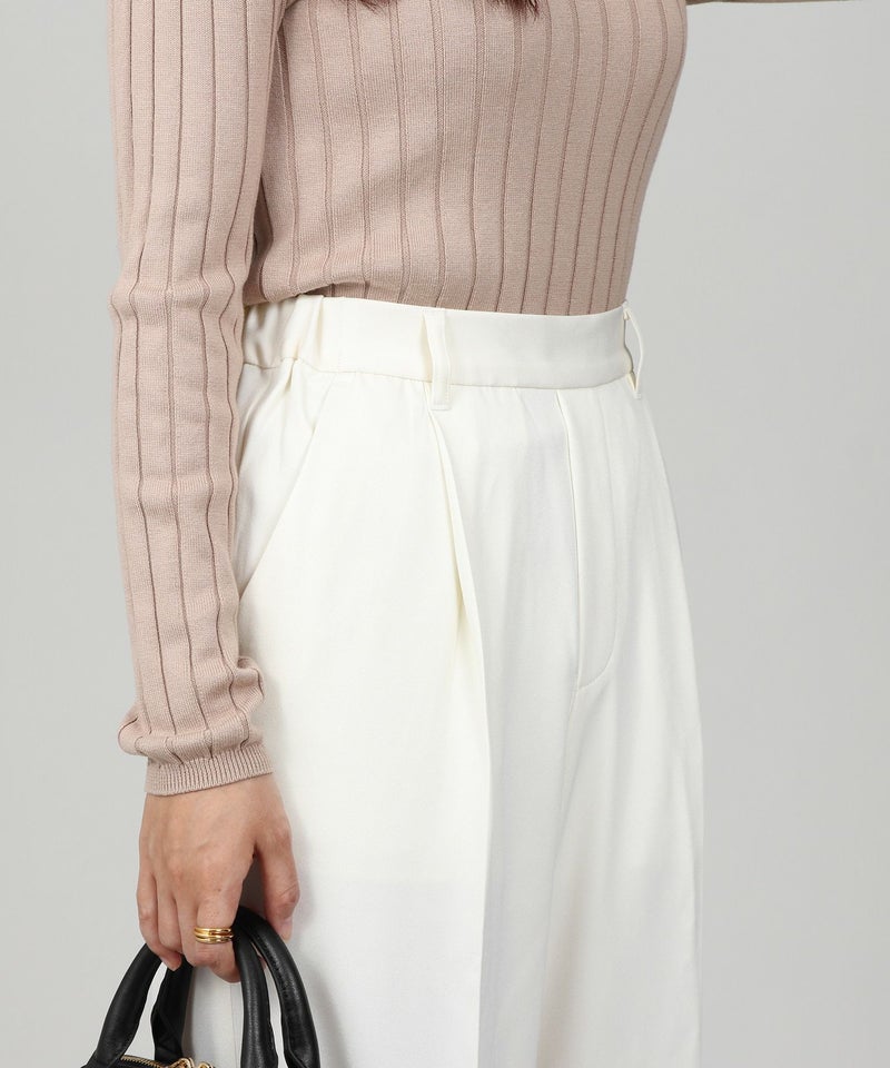 股下丈が長めの設計なので、下半身がダボっと見えてしまうワイドパンツでもスタイルアップが実現!