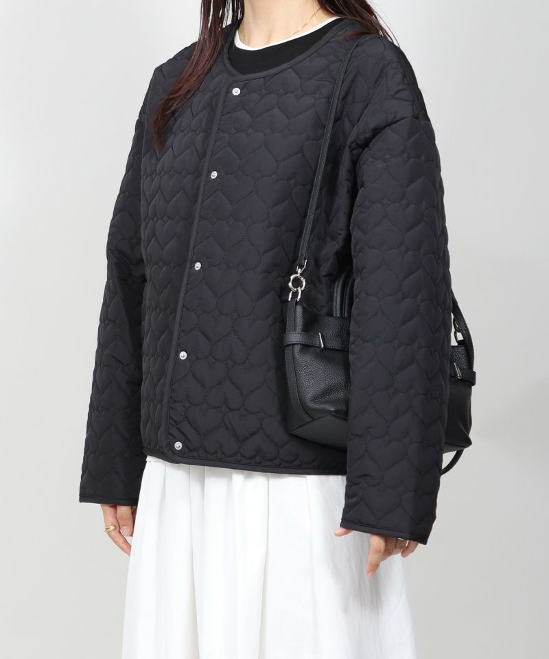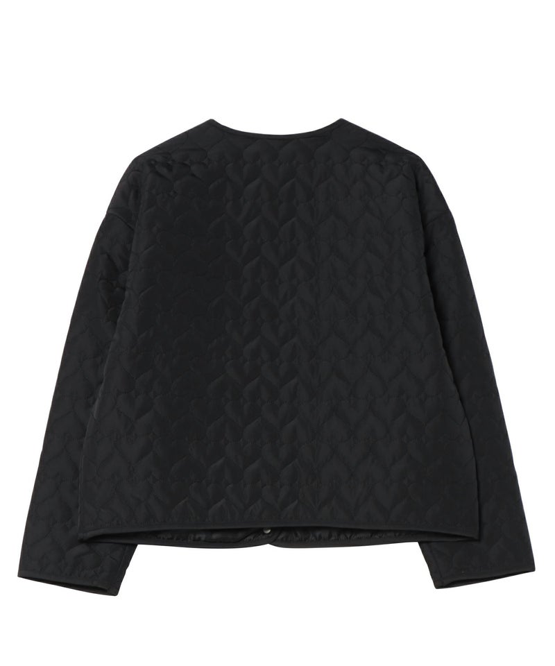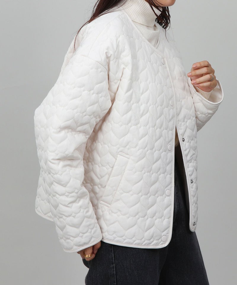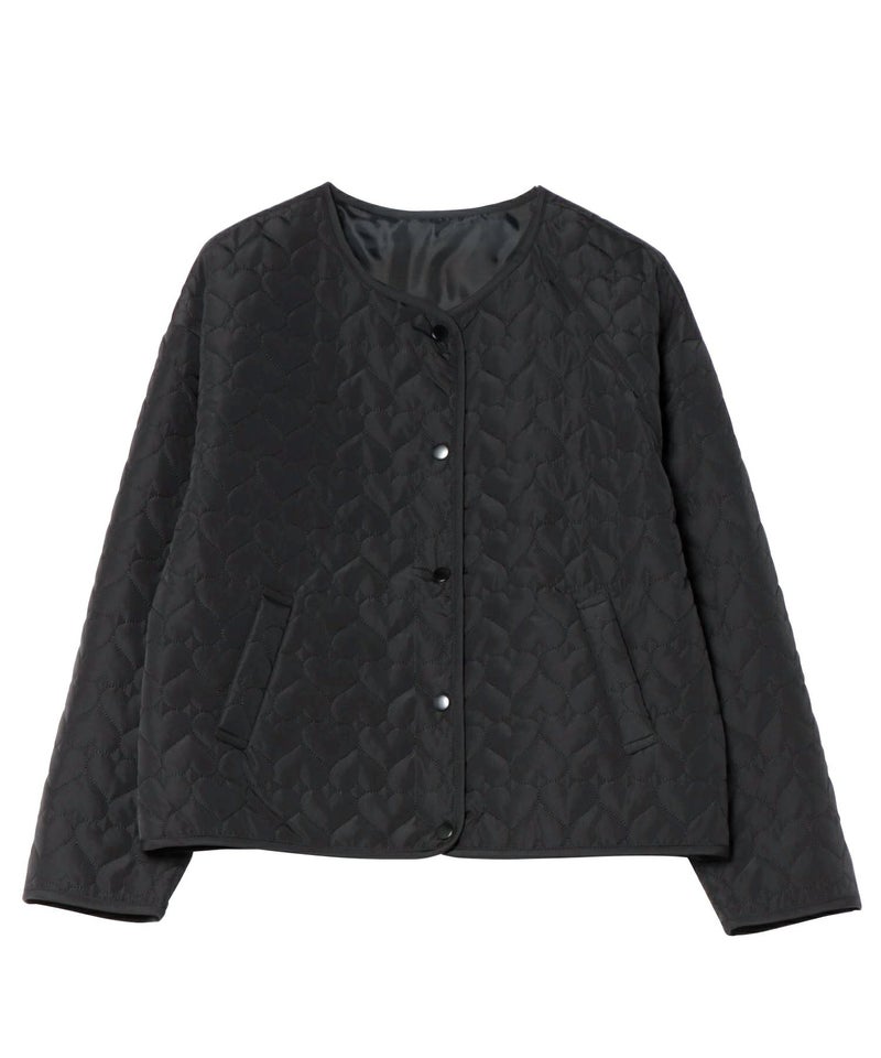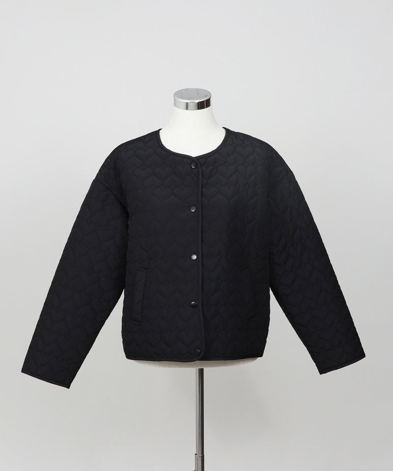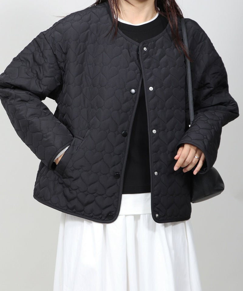 ハートキルト 軽量 ノーカラージャケット コート アウターノーカラー キルティングジャケット ジャケット 秋 冬 秋冬 ハート 柄 暖か 暖かい あたたか あたたかい あったか ミディ丈 ミドル丈 防寒 旅行 [Esime]ハートキルト 軽量 ノーカラージャケット