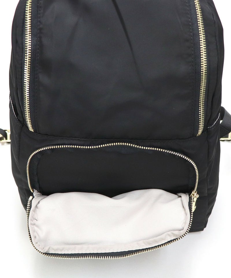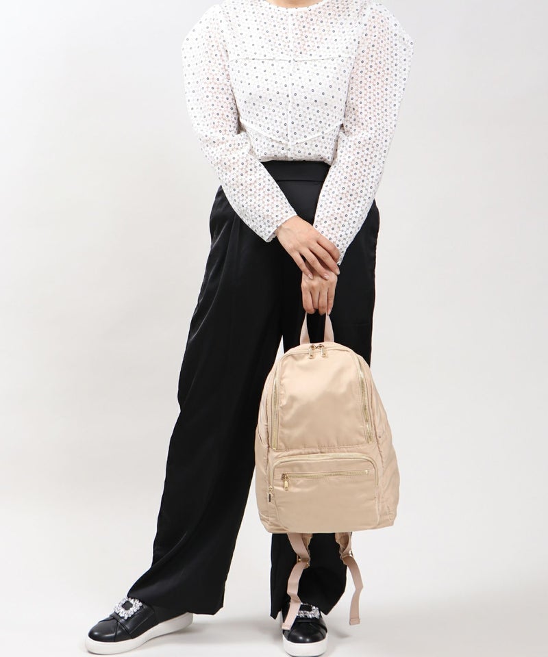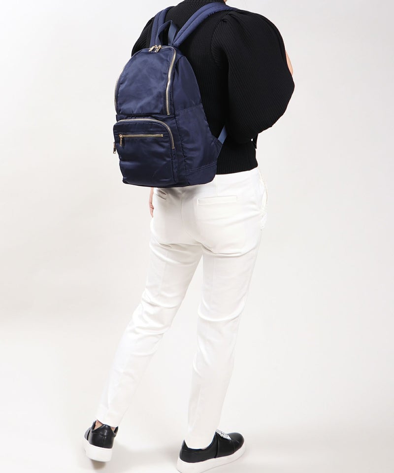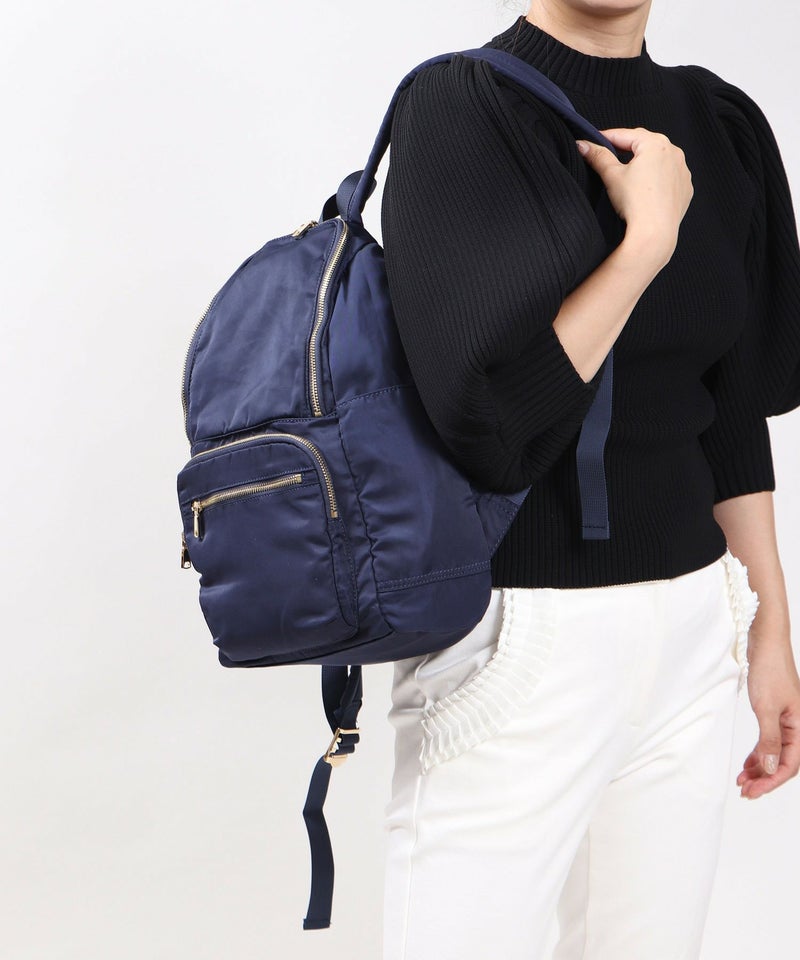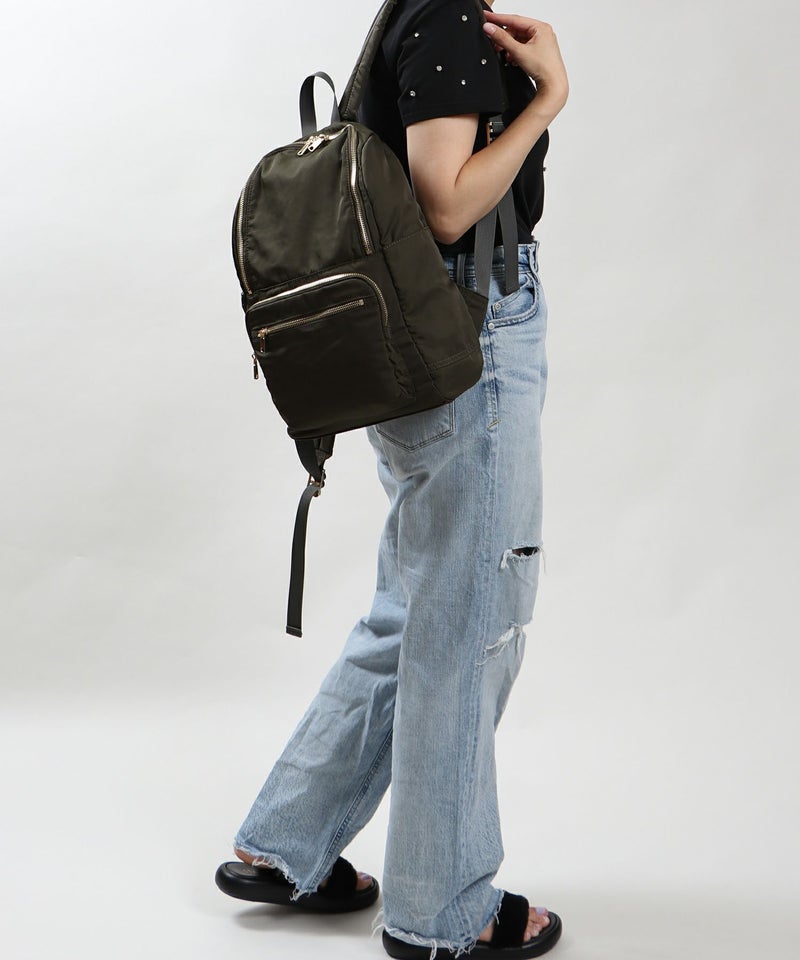 フロントのファスナーポケットや、内側のポケットで細かな荷物も整理しやすく、軽量なのでマザーズバッグとしてもお使い頂けます。