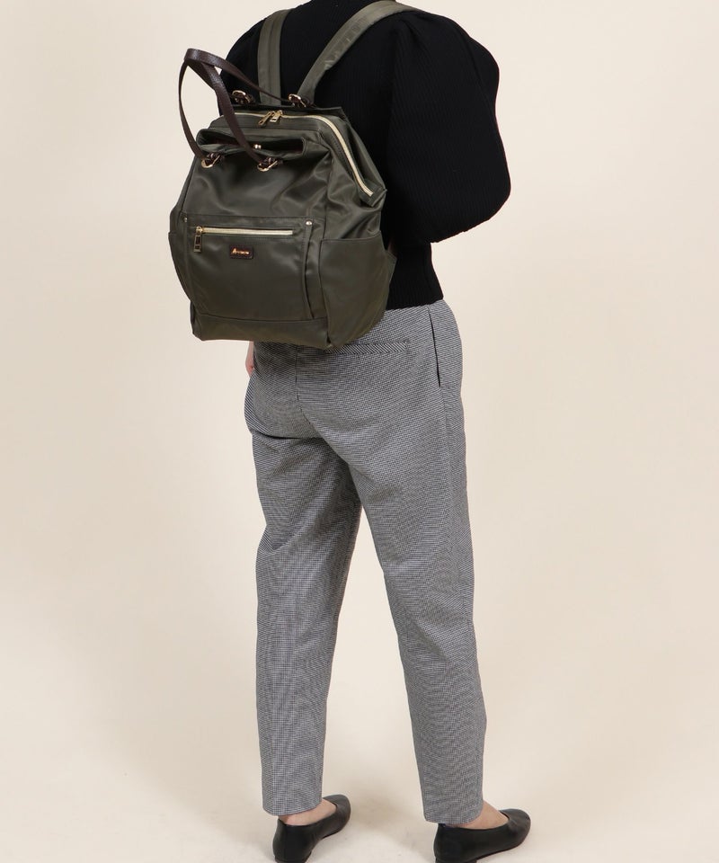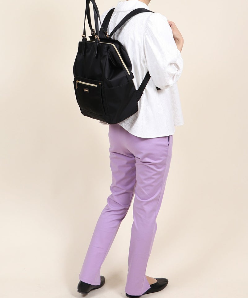 リュックサック リュック A4 A4サイズ対応 トートバッグ 2way がま口 無地 旅行 アウトドア レディース 女性 ユニセックス マニッシュ シンプル カジュアル デイリー 大容量 収納力 [Bermosa]A4サイズ対応 がま口開閉 2wayリュック