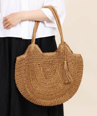 かごバッグ かご トートバッグ レディース 女性 かわいい 可愛い 柄 大人 高見え 華やか 春 夏 サマー サマーバッグ 編み 大きめ 旅行 リゾート 主役 大容量 収納力 [Bermosa]タッセル付き ラウンド型 編み込みデザインかごバッグ