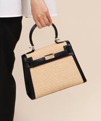かごバッグ かご ハンドバッグ ショルダーバッグ 2way 2wayバッグ レディース 女性 かわいい 可愛い 大人 シンプル 春 夏 サマー 斜め掛け 編み 旅行 リゾート バイカラー フラップ キーチャーム [relac]異素材バイカラー 2wayミニかごバッグ