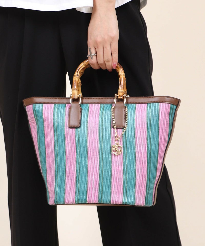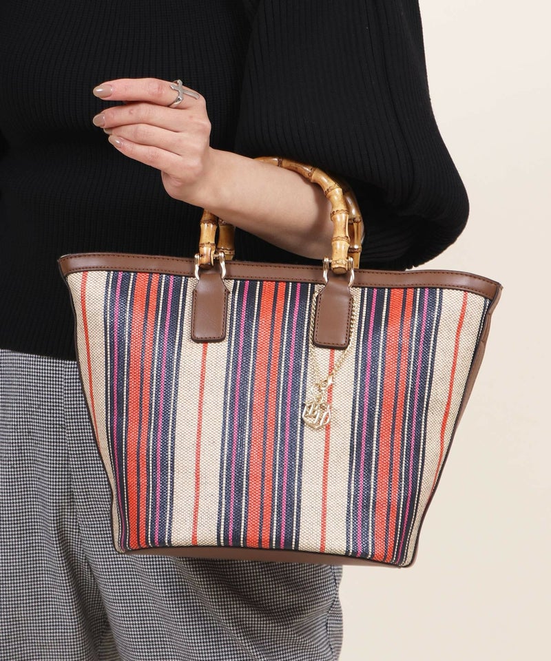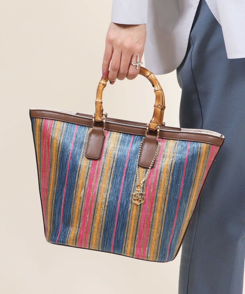 ショルダーバッグ ミニバッグ ミニショルダー 仕切り 小さめ スモール [Bermosa]ミックスストライプ柄 バンブーハンドル 2wayかごトートバッグ