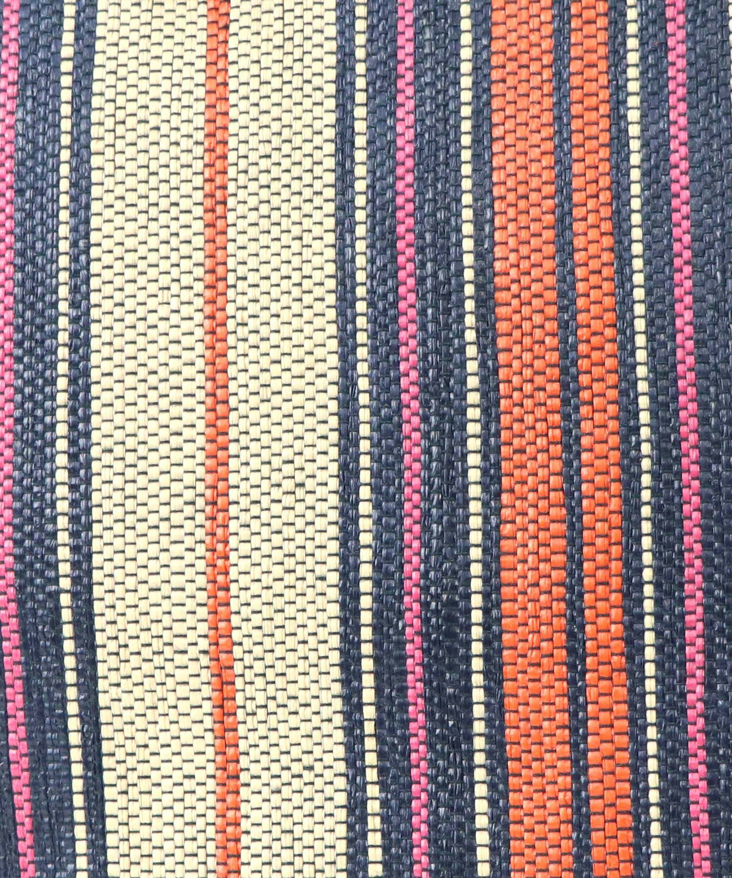 涼し気なテープ風の生地感に、様々なカラーで描かれたストライプ柄が印象的。