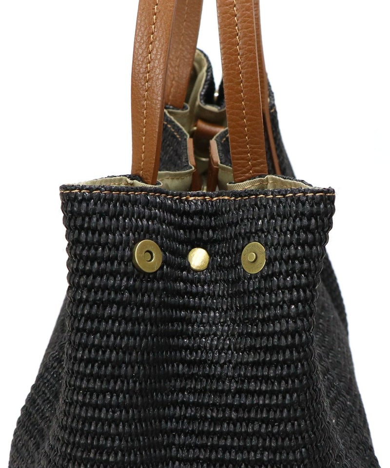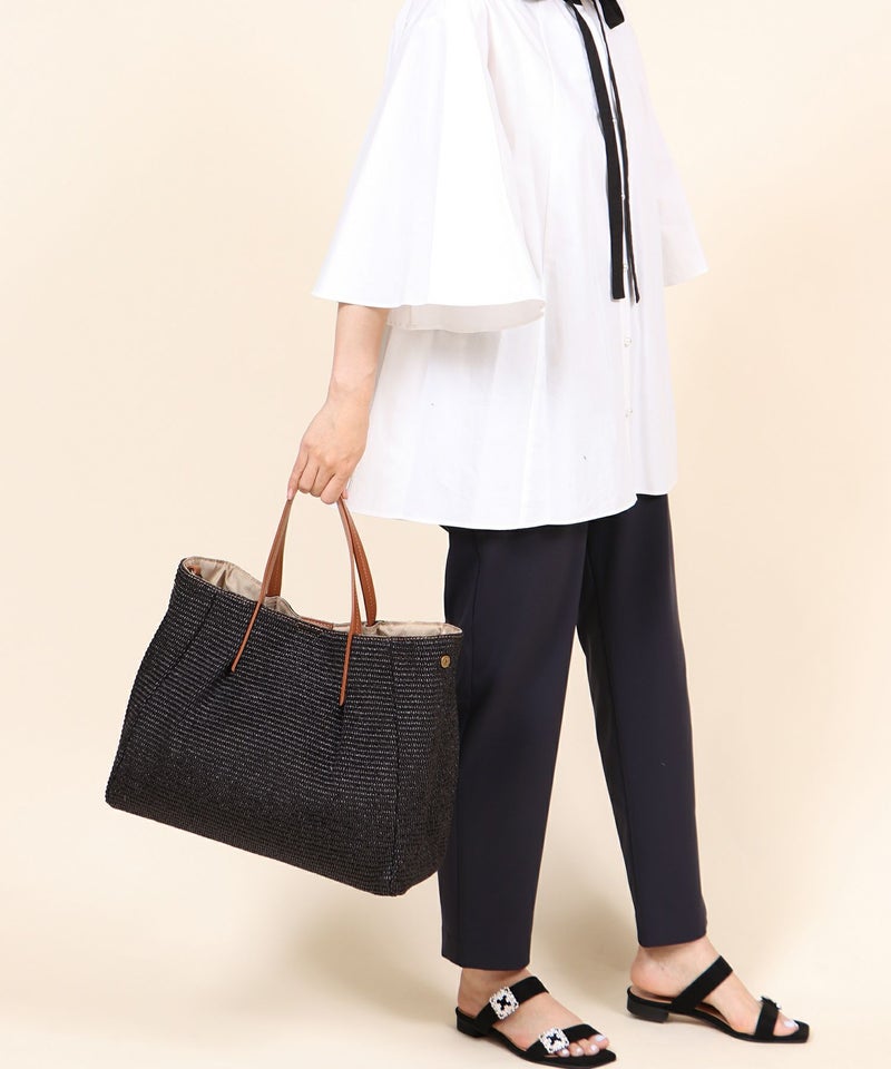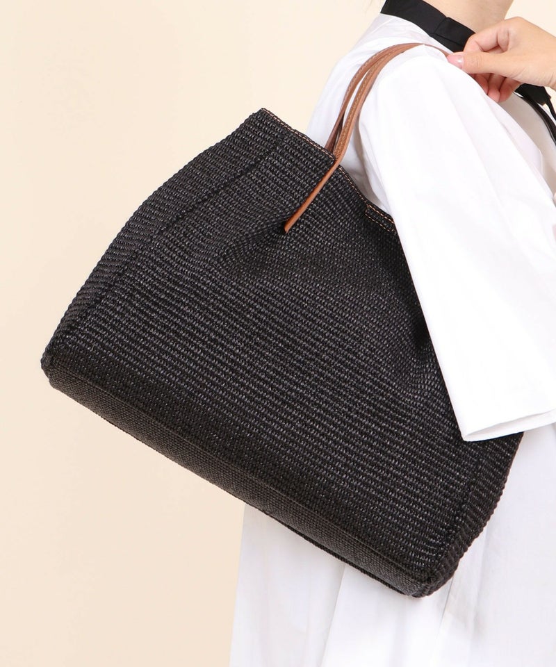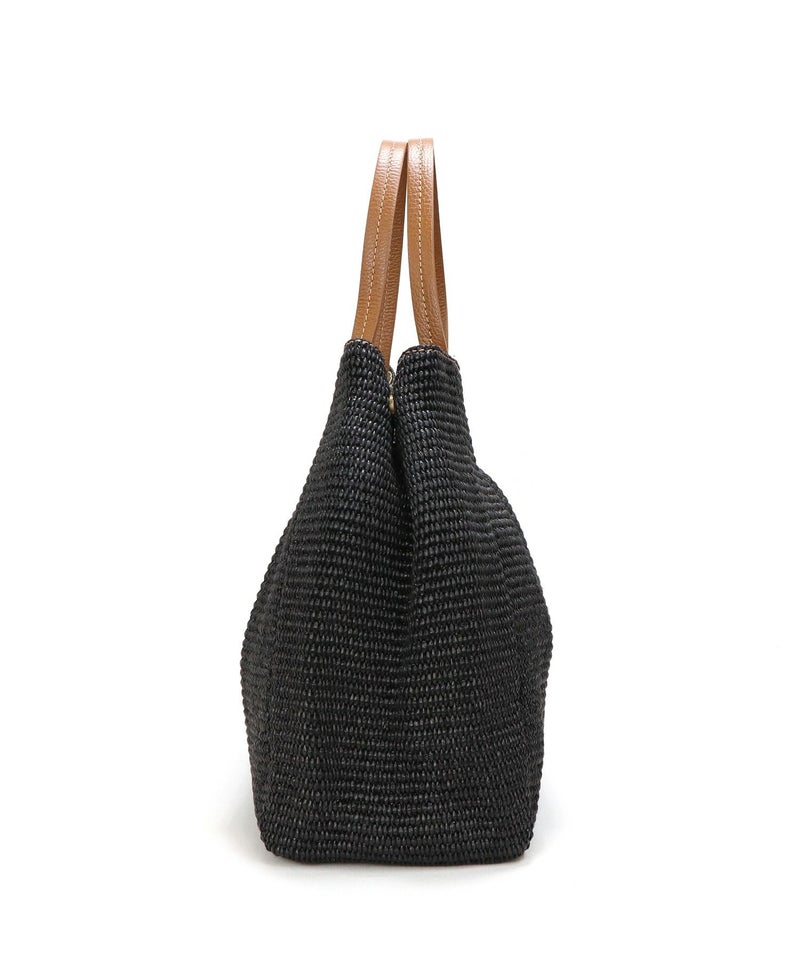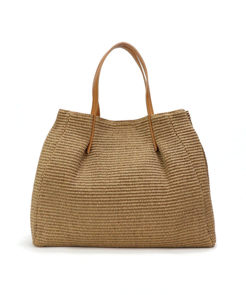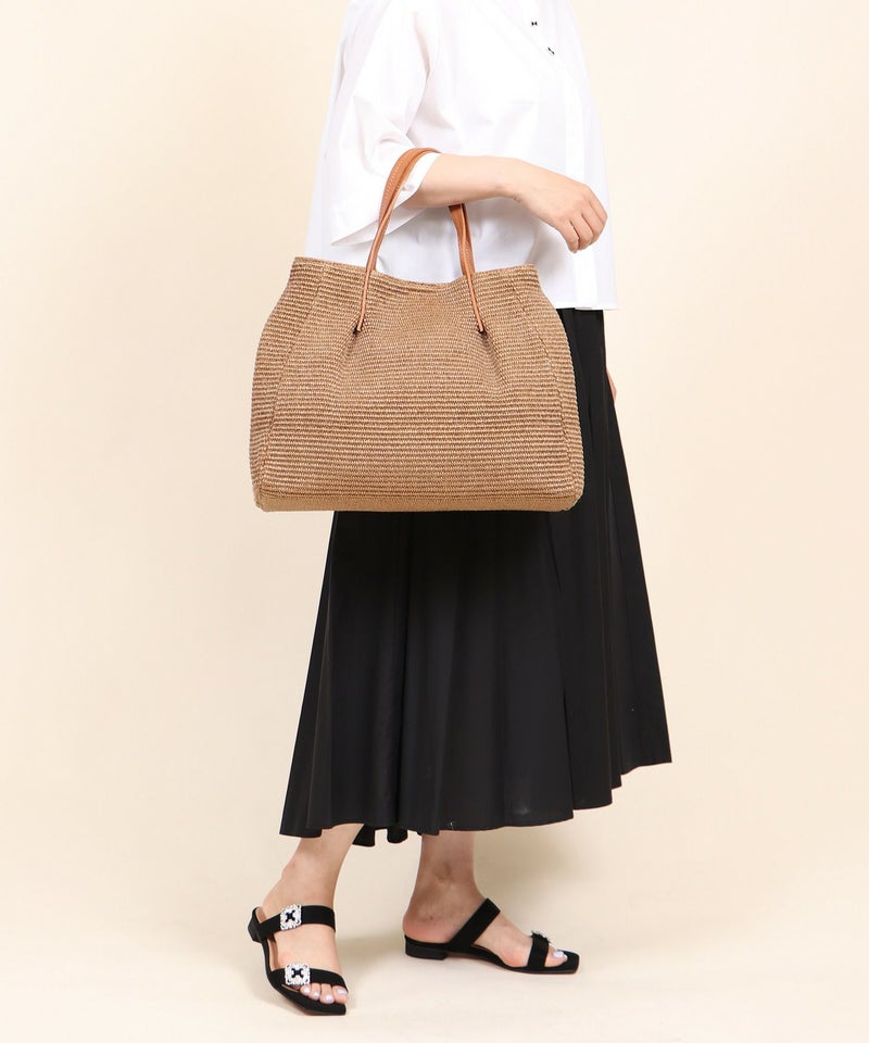 目を詰めてしっかりと編み上げたかごに、本革のハンドルを合わせたコンビネーションかごバッグ。