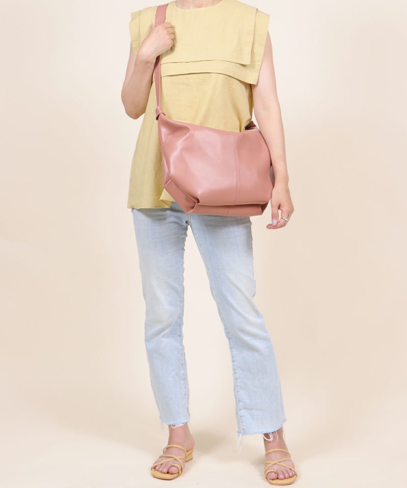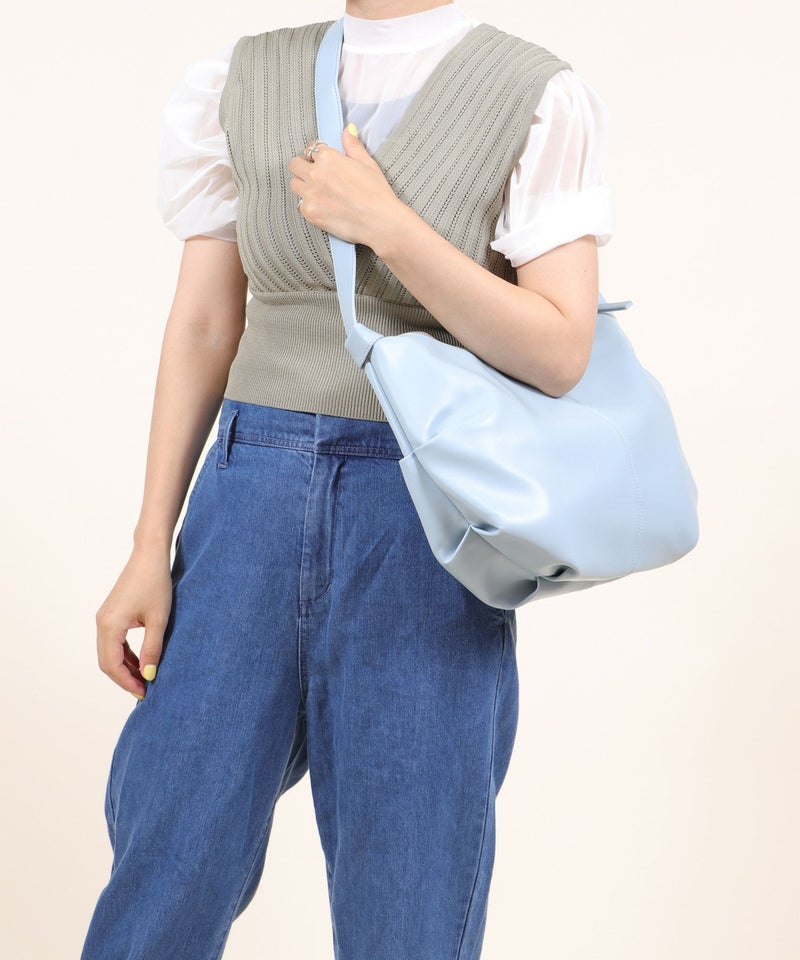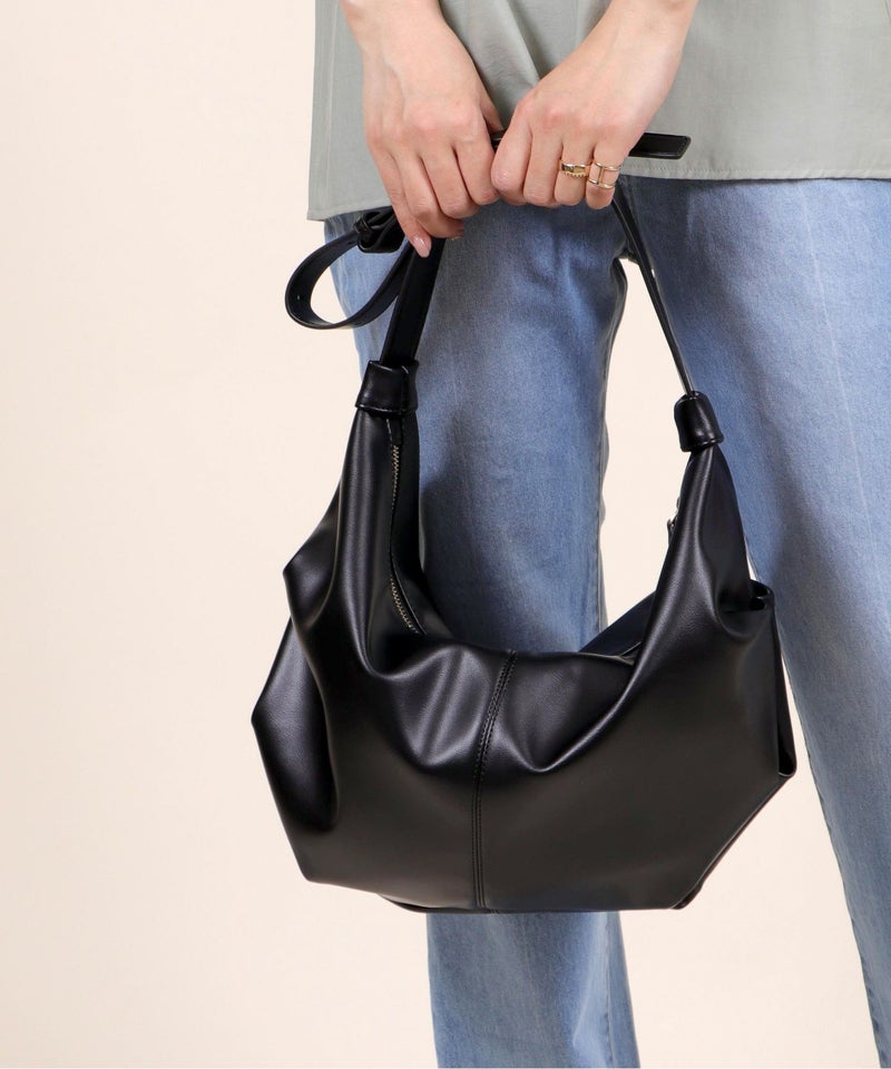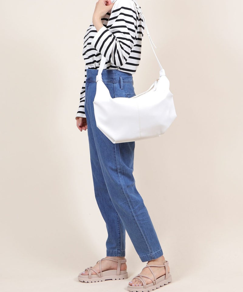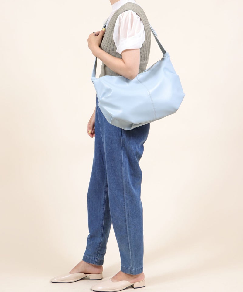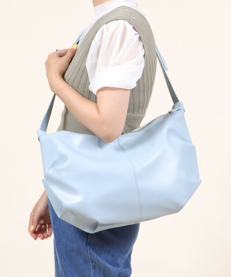 ラウンド型の大きめショルダーバッグ。