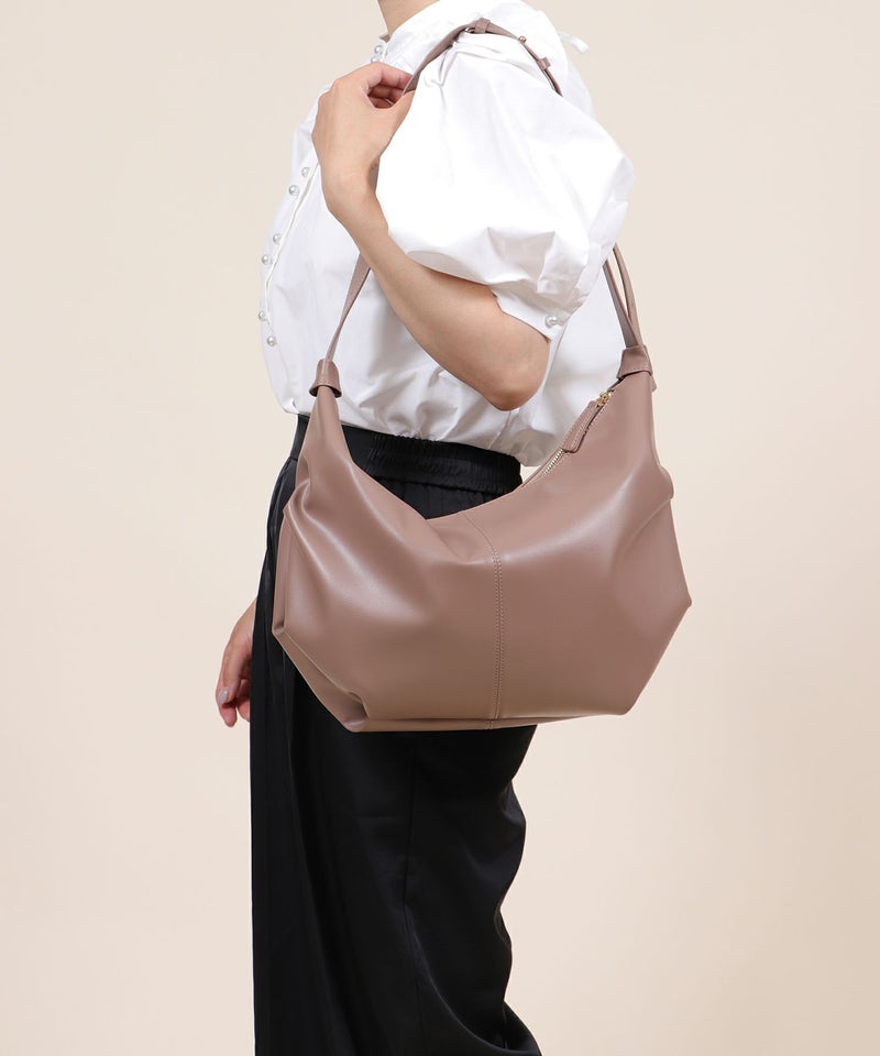 ふんわりとした女性らしいシルエットに加え、間口はファスナー開閉式で中の荷物が見える心配も無く、見た目以上に大容量!
