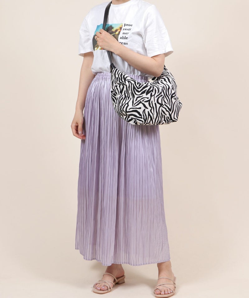 通勤 通学 無地 大容量 旅行 斜め掛け アニマル 柄 ゼブラ [Bermosa]2タイプ素材 サイドギャザー ショルダーバッグ
