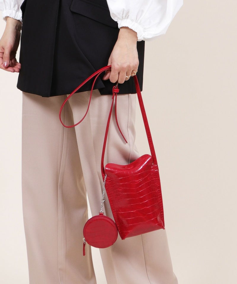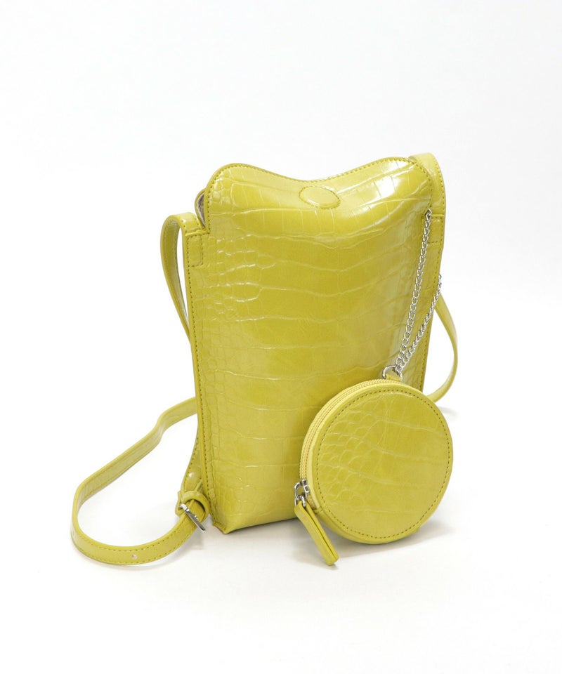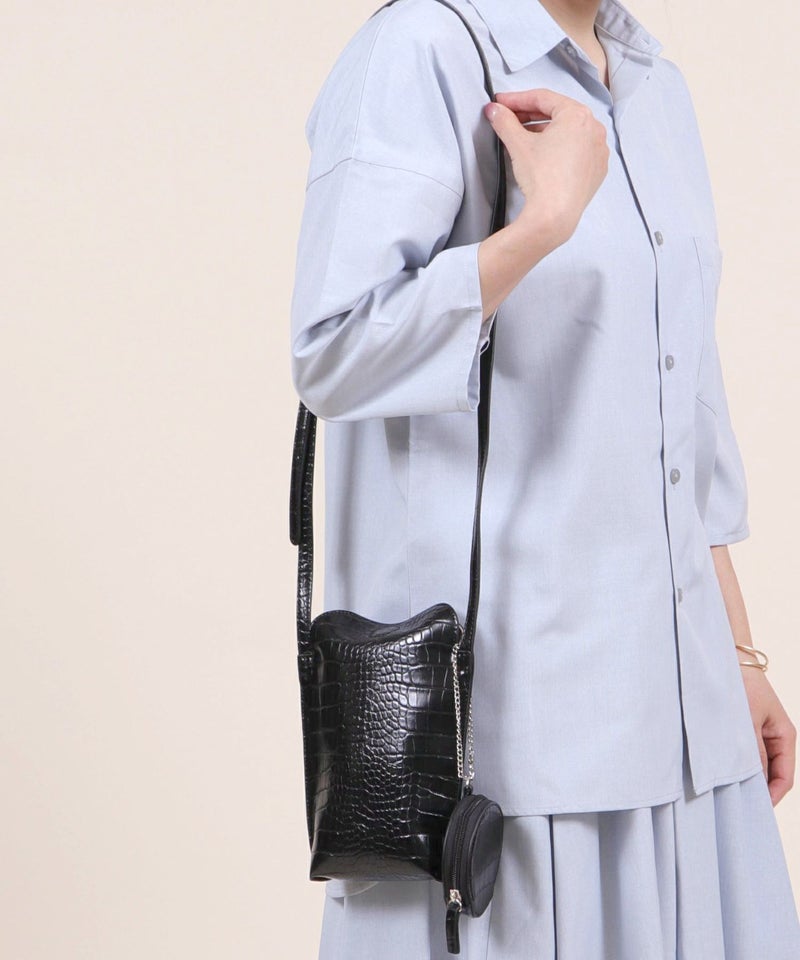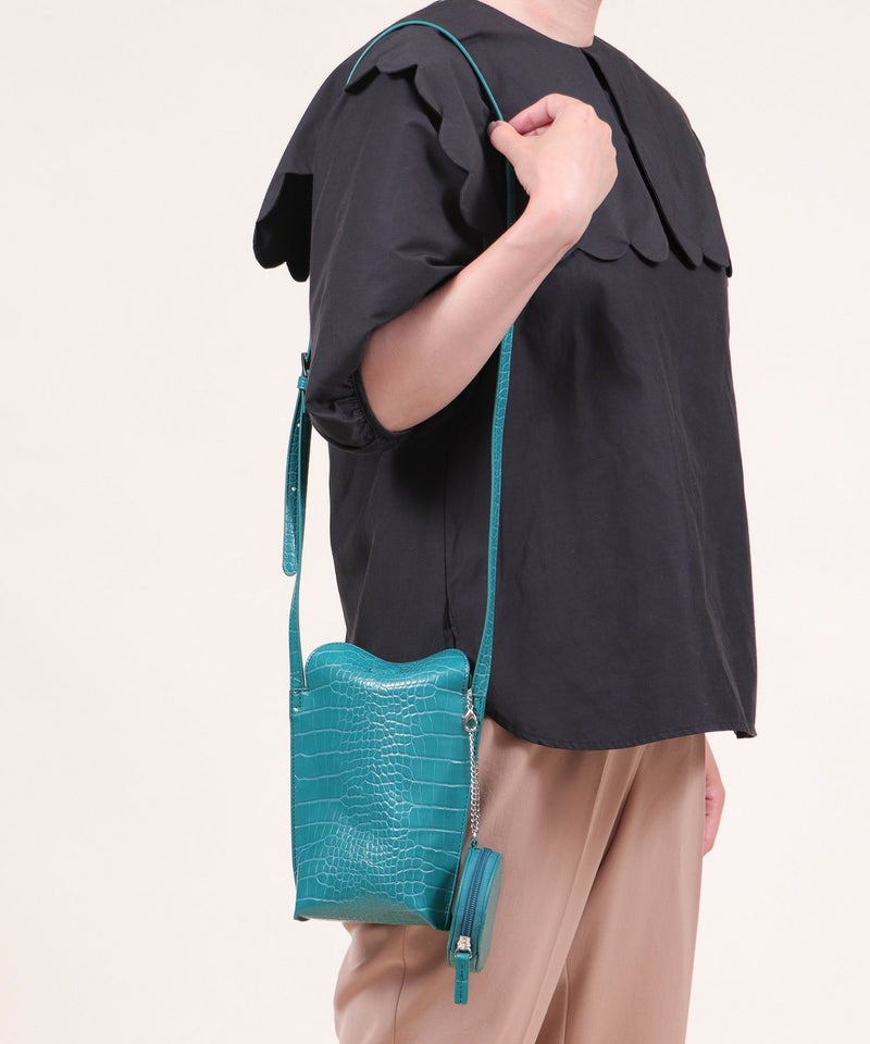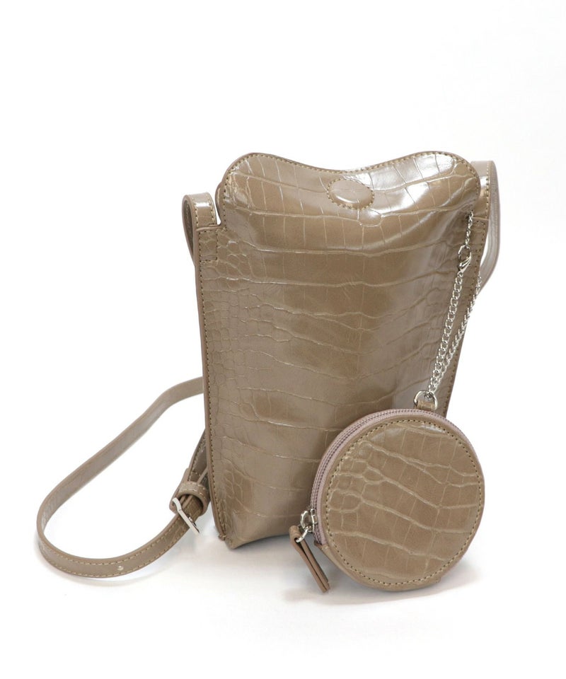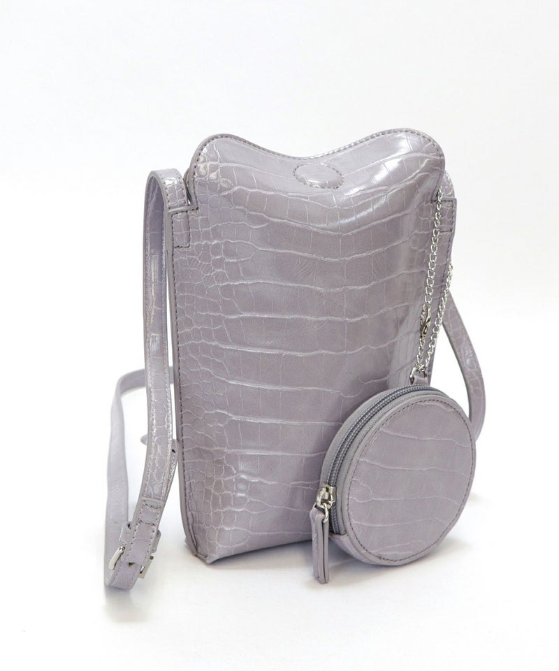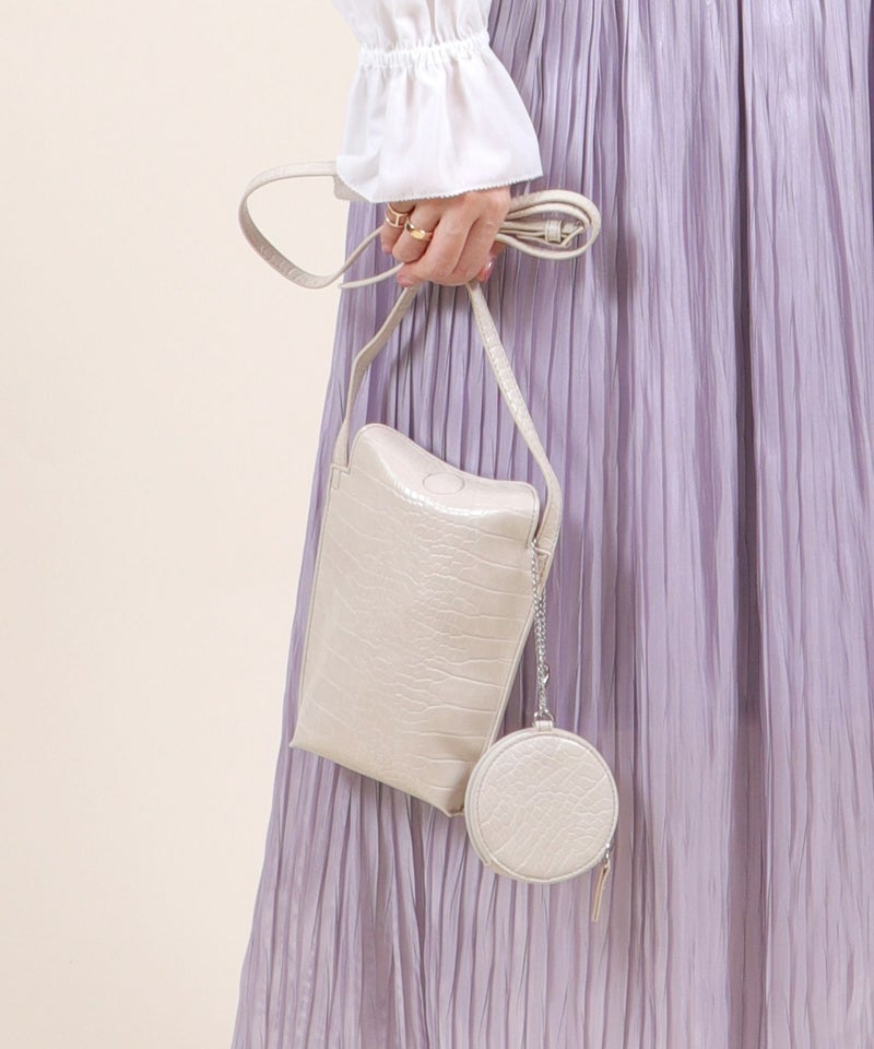 2022SS新作アイテム ミニバッグ ミニショルダー スマホポーチ [Bermosa]サークル型ポーチ付き クロコ型押し ミニショルダーバッグ
