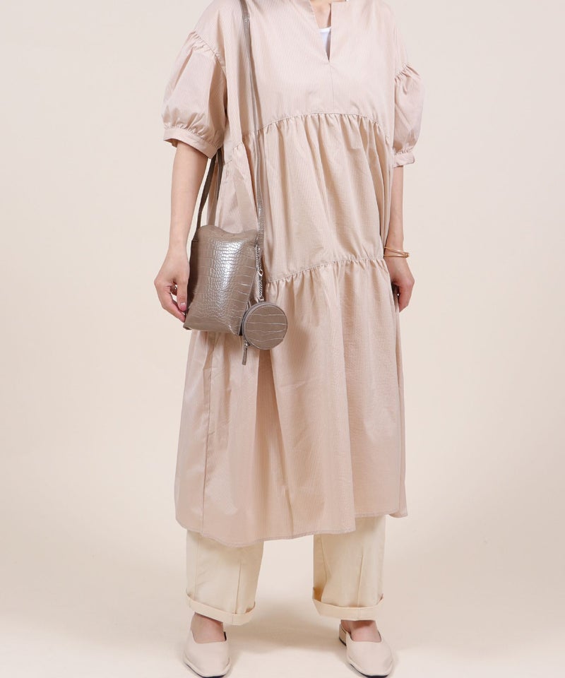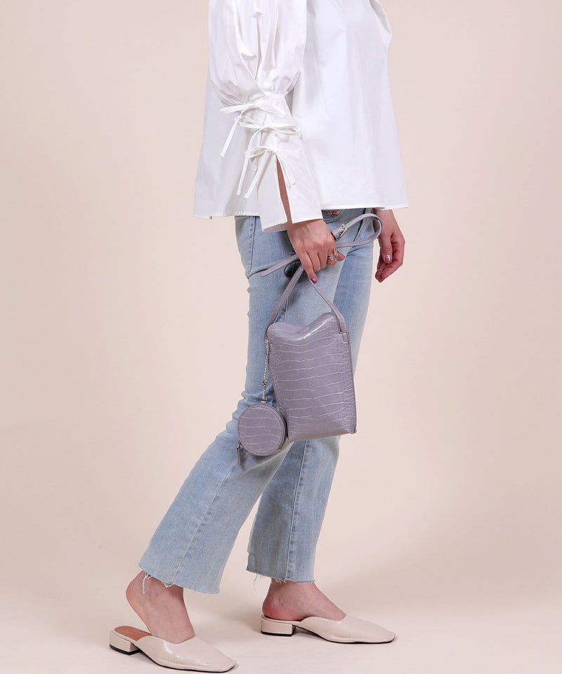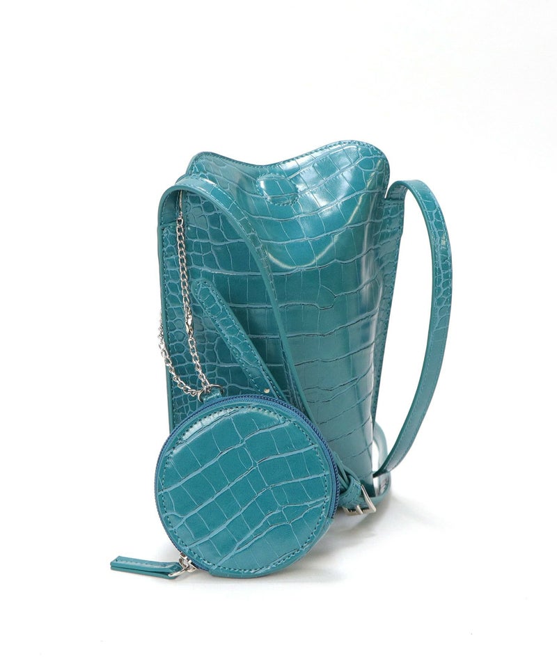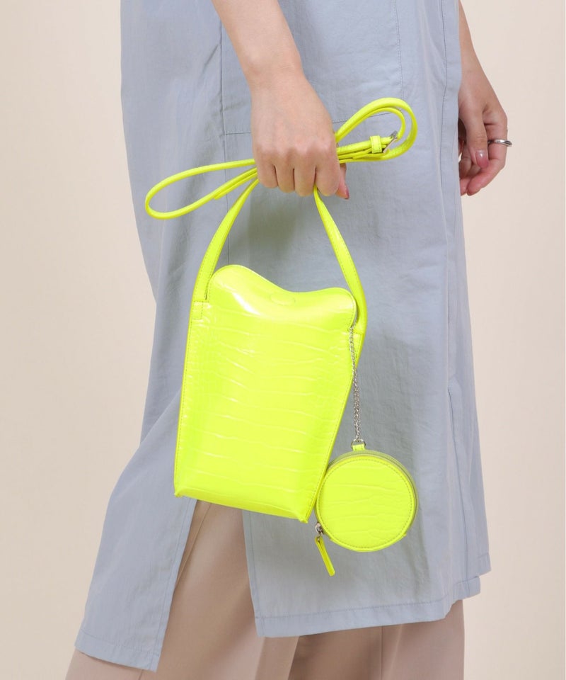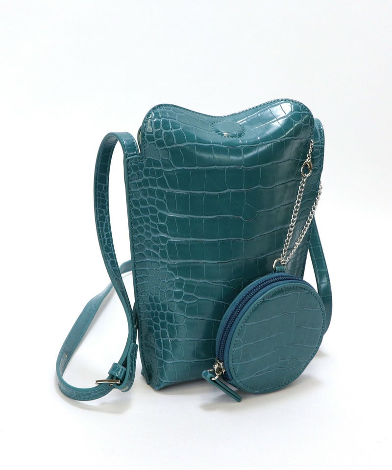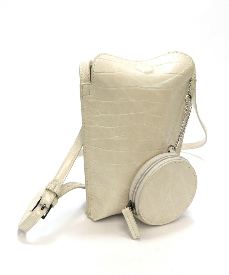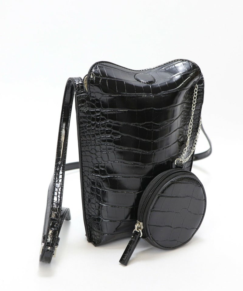 2022SS新作アイテム ミニバッグ ミニショルダー スマホポーチ [Bermosa]サークル型ポーチ付き クロコ型押し ミニショルダーバッグ