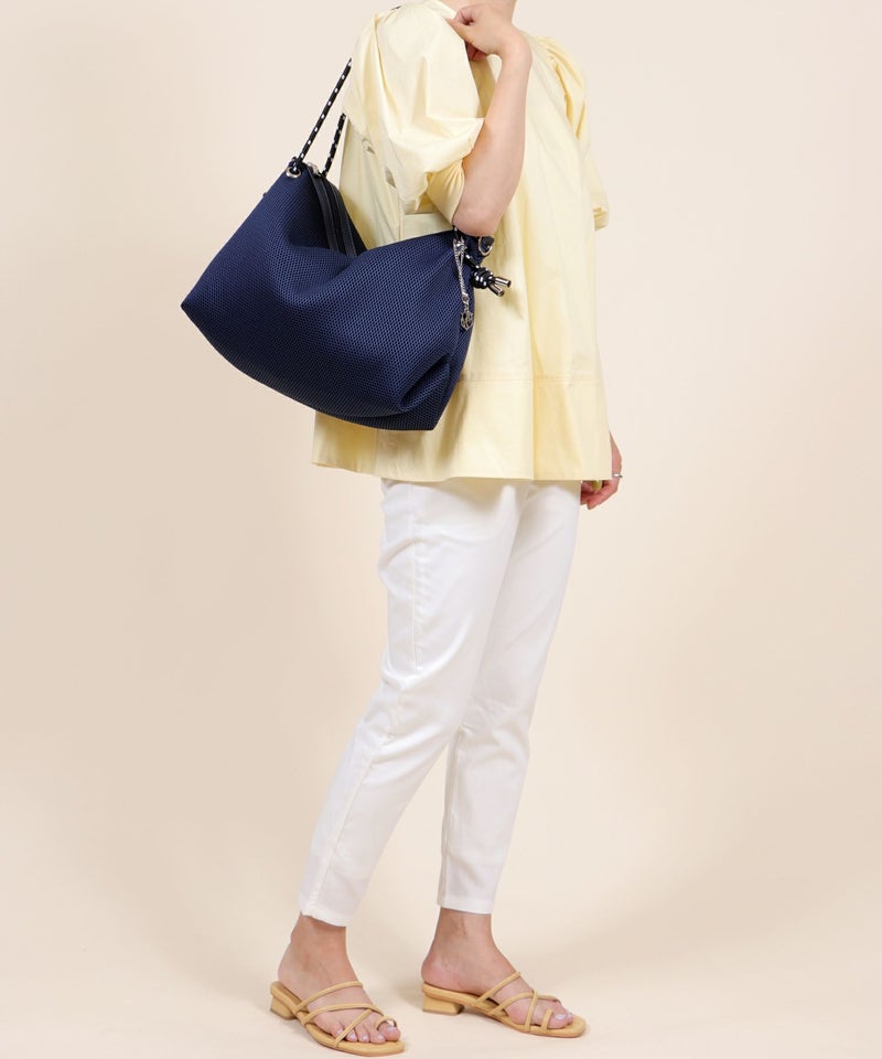 柔らかなメッシュ生地を使用した大容量のトートバッグ。
