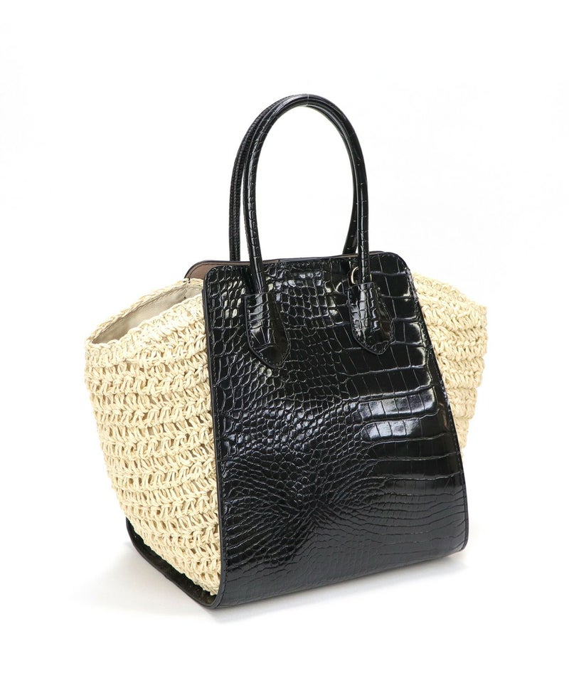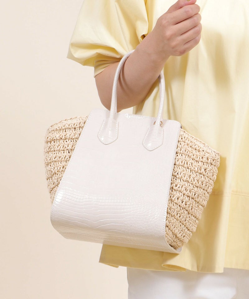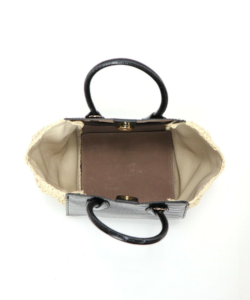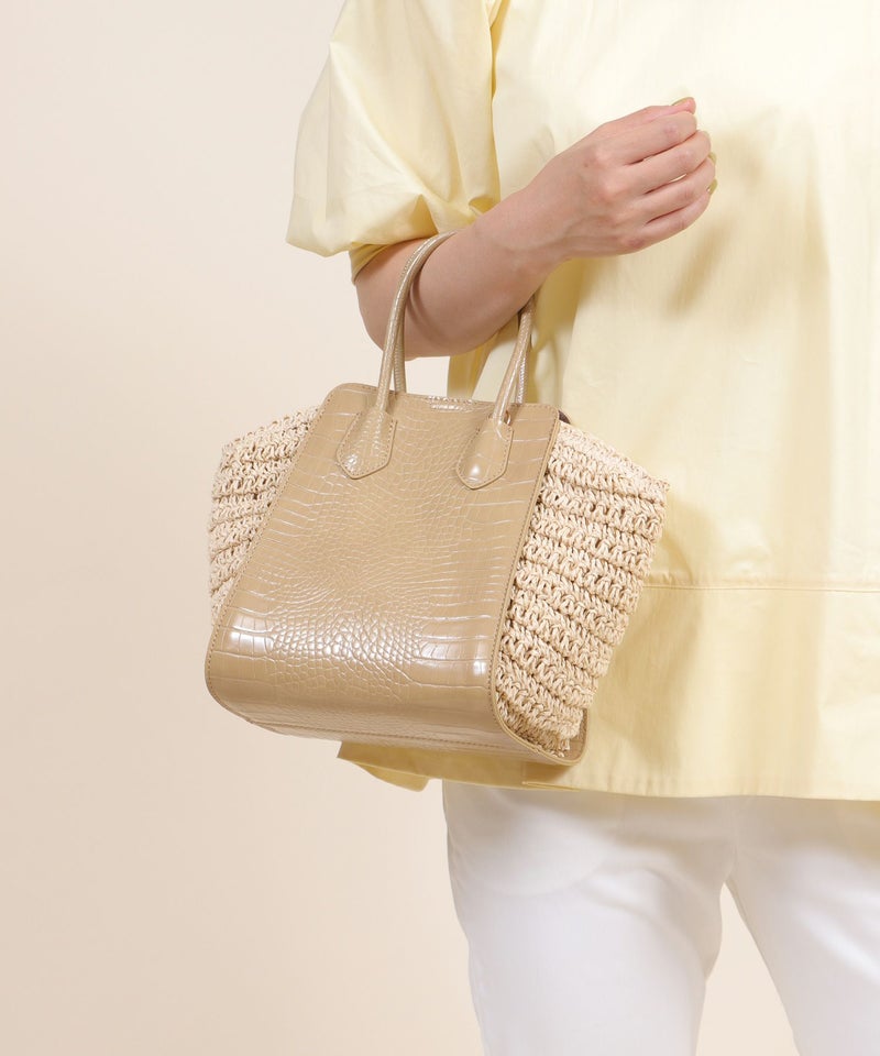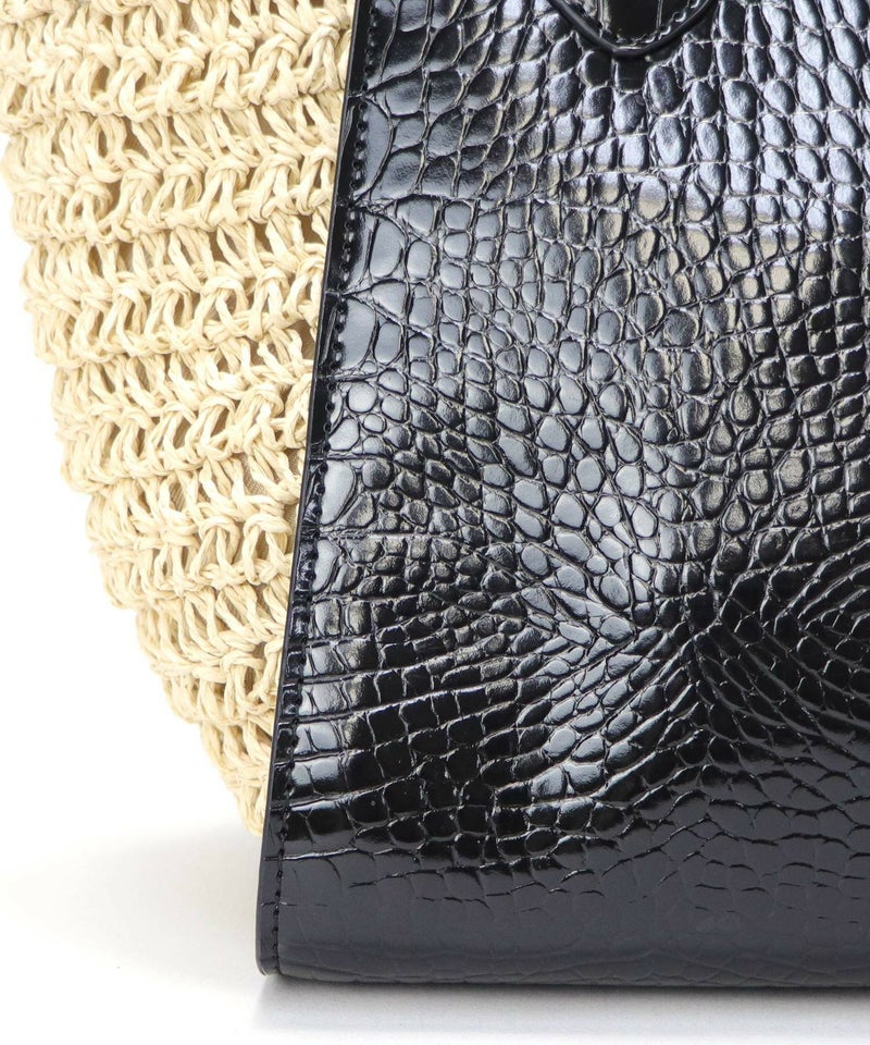 ハンドバッグ ショルダーバッグ かごバッグ カゴバッグ 春 夏 サマー [Bermosa]異素材コンビ クロコ型押し バイカラーかごハンドバッグ