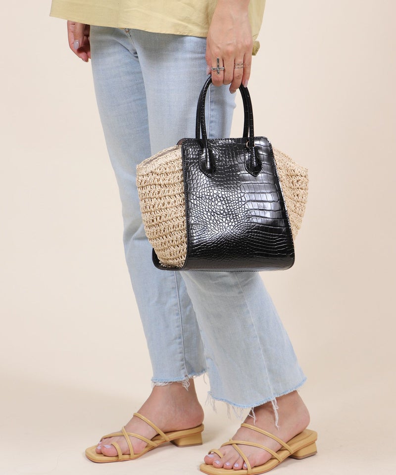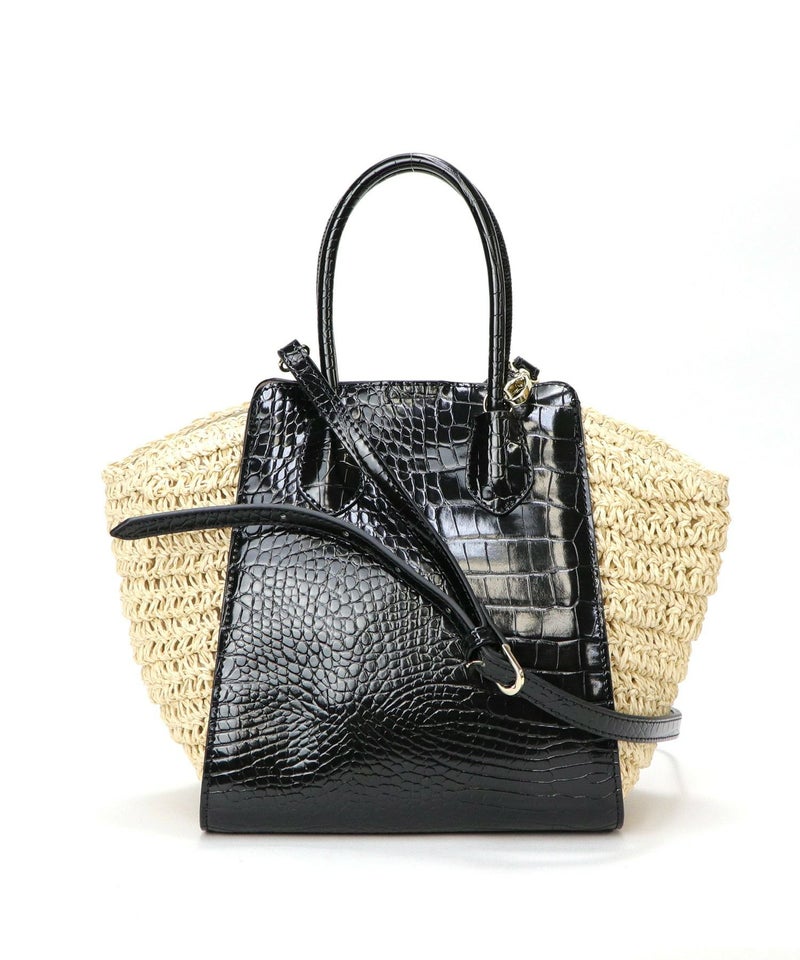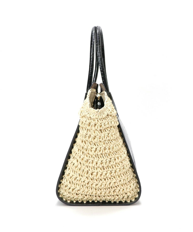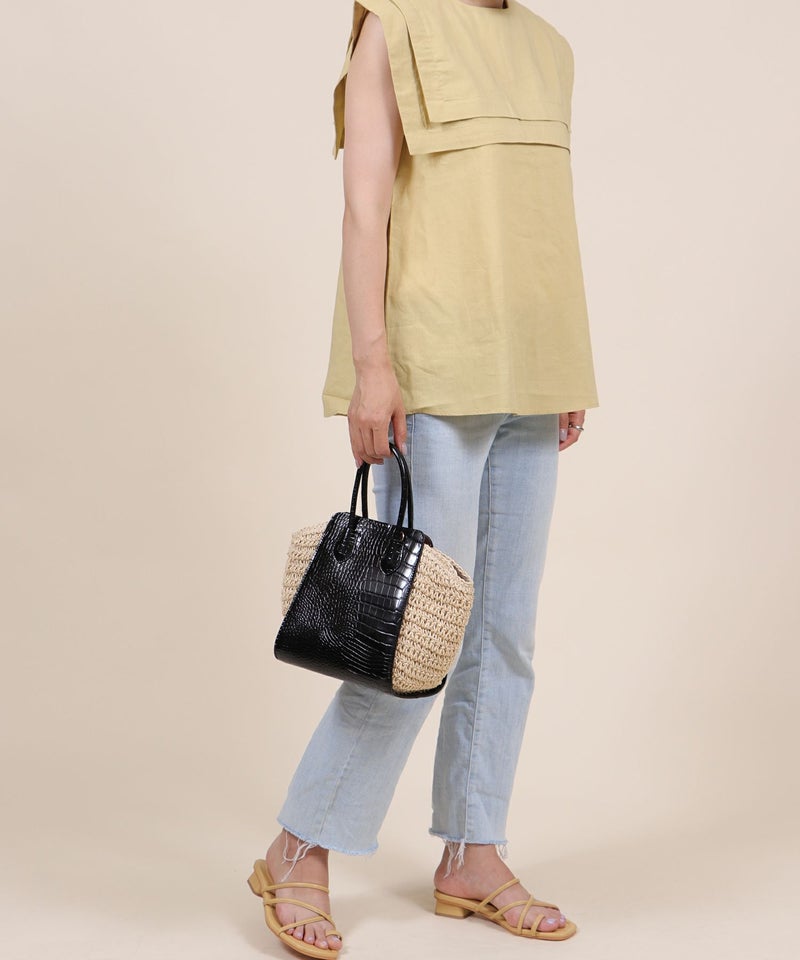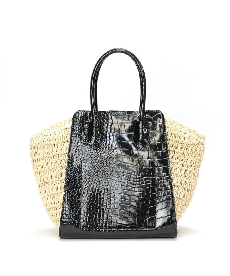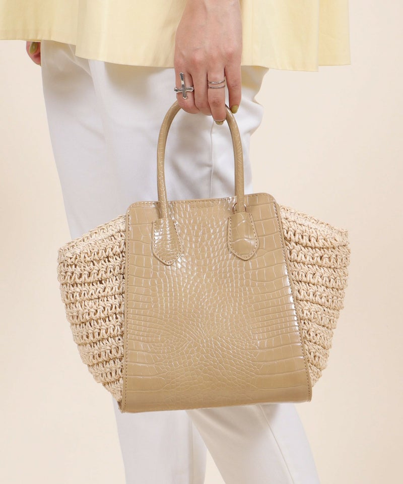 ハンドバッグ ショルダーバッグ かごバッグ カゴバッグ 春 夏 サマー [Bermosa]異素材コンビ クロコ型押し バイカラーかごハンドバッグ