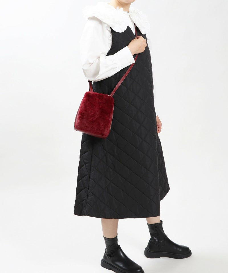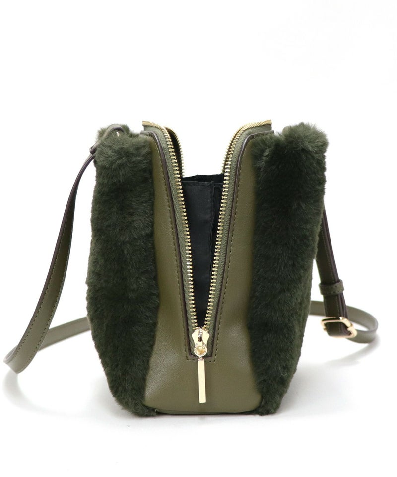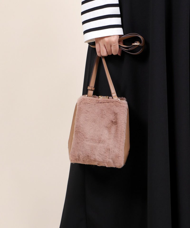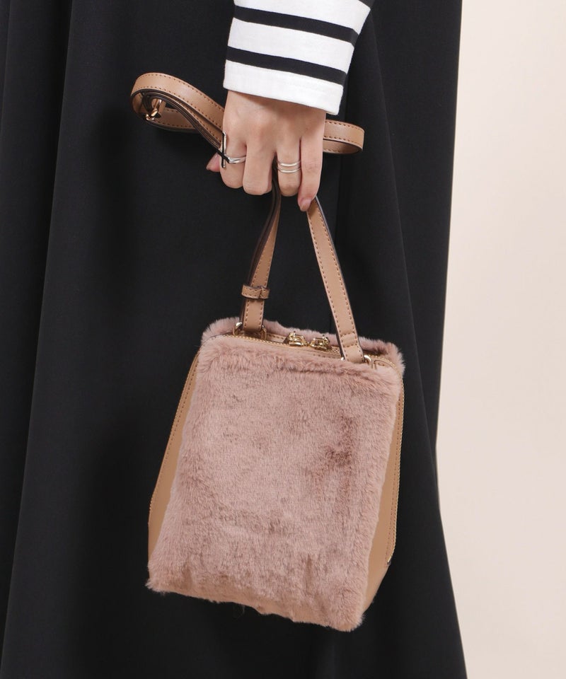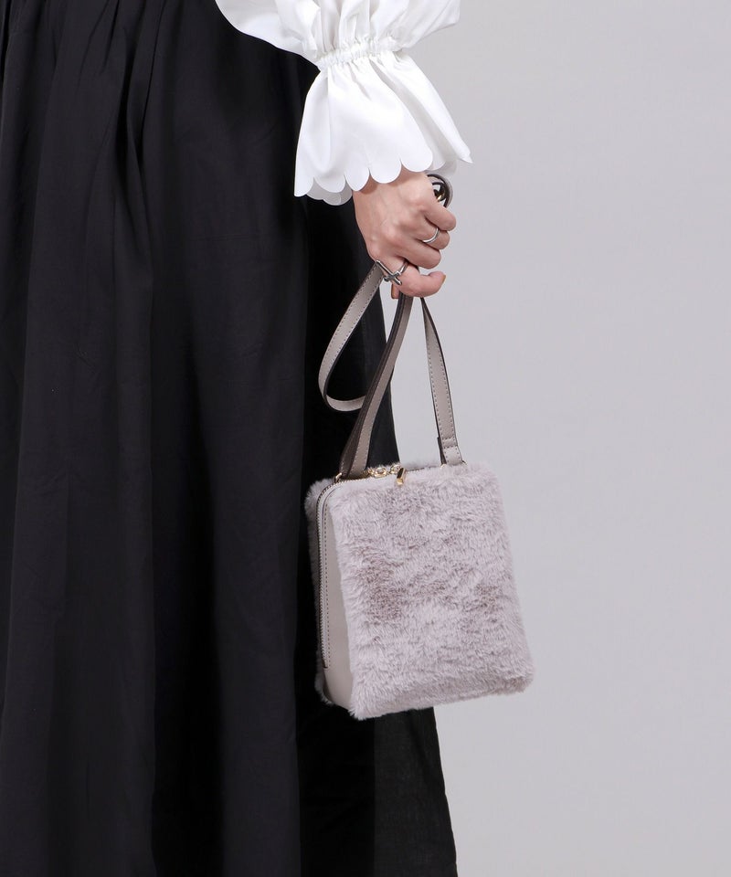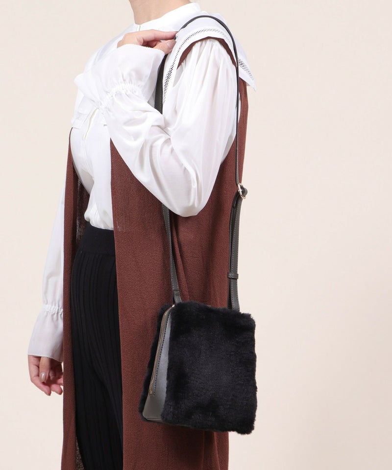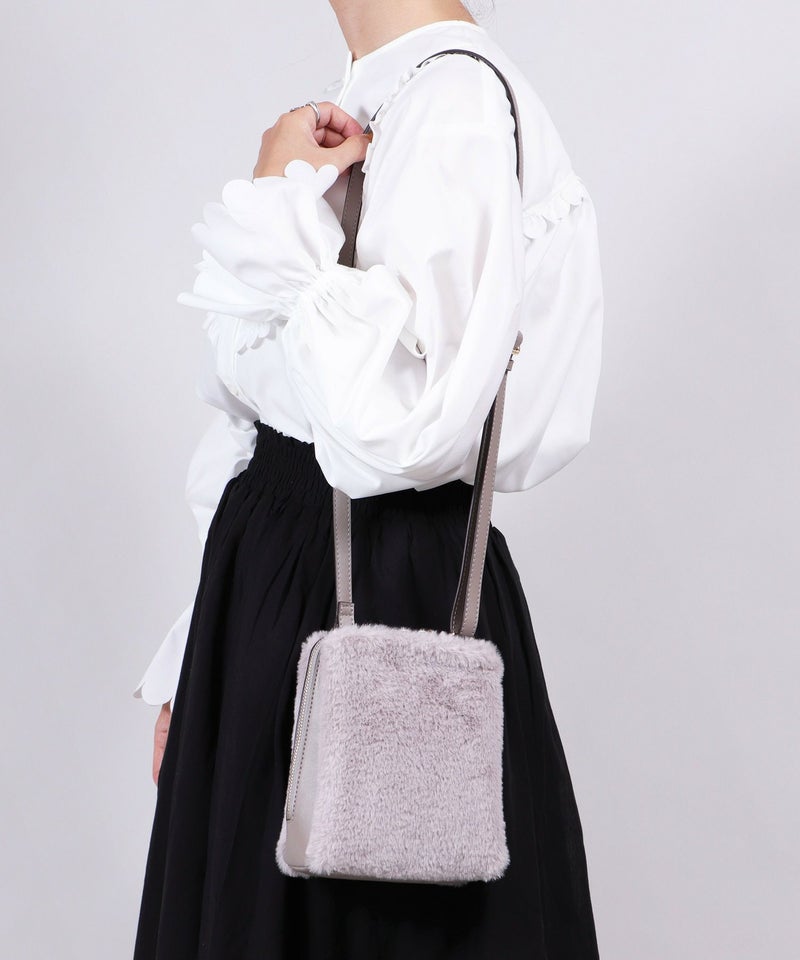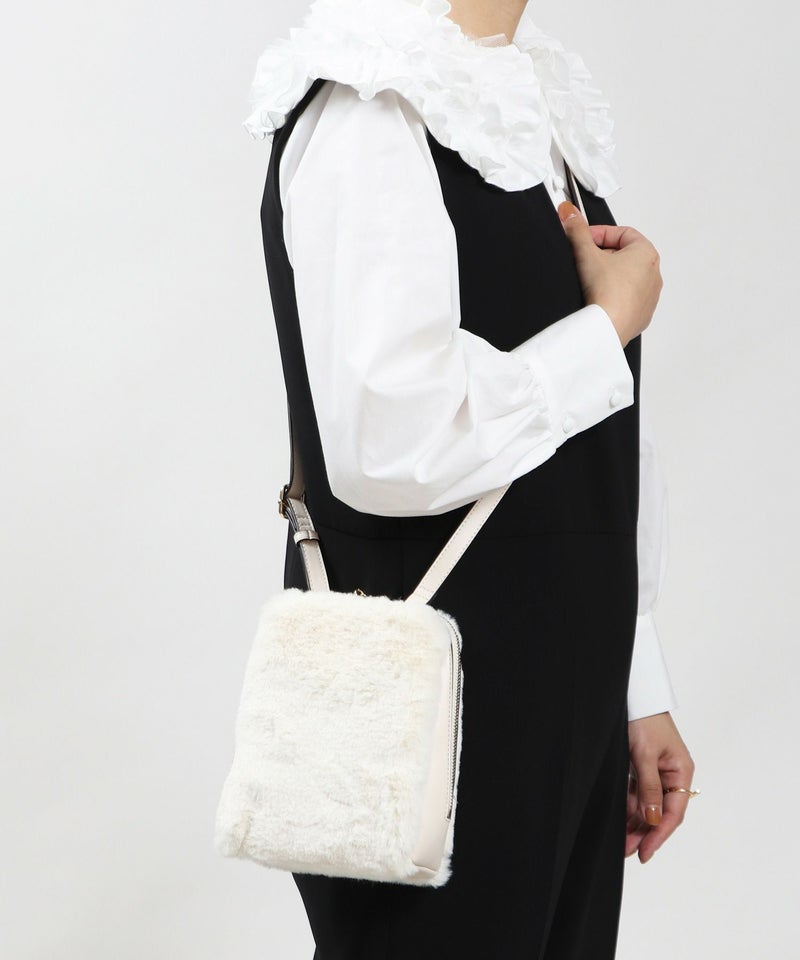 小ぶりで可愛い、ふわふわファーのショルダーバッグ。