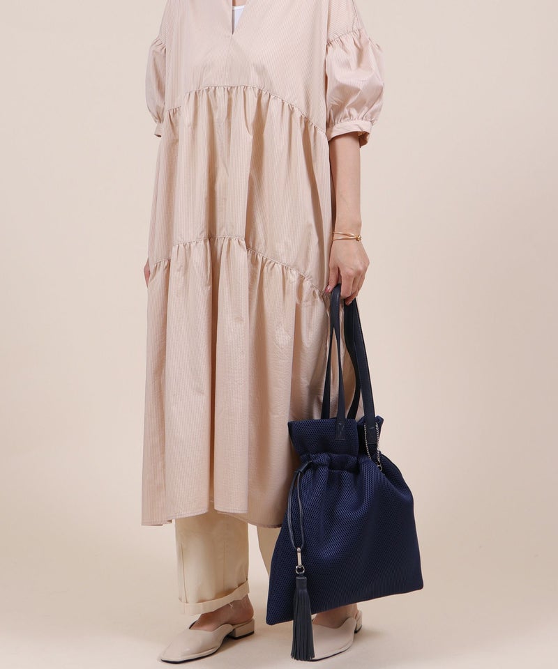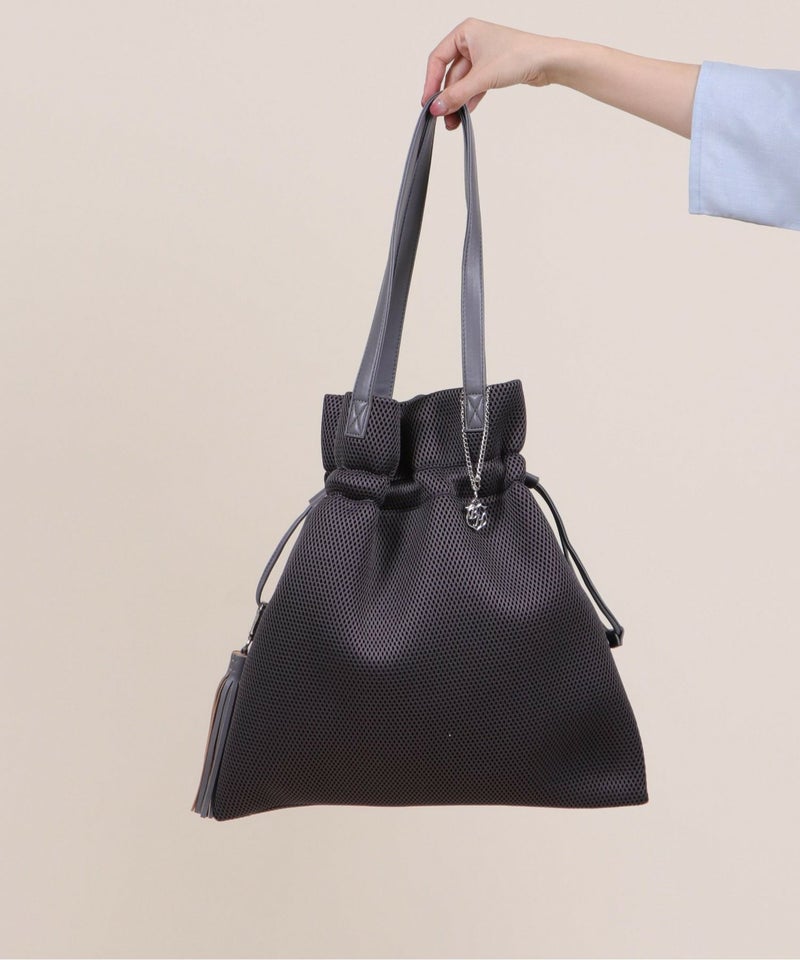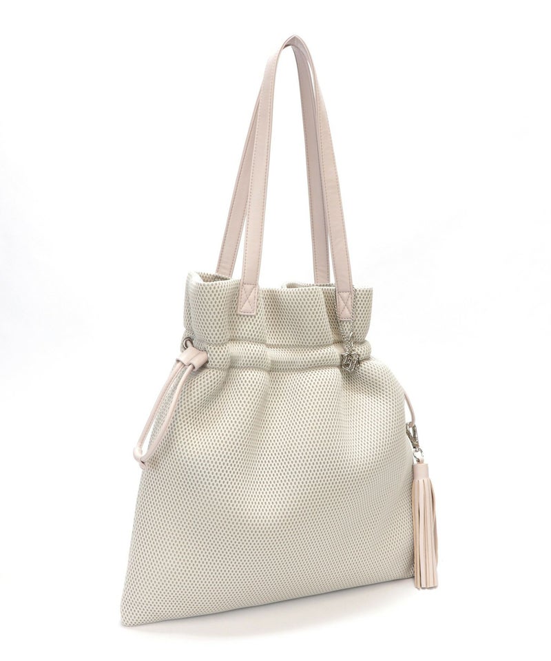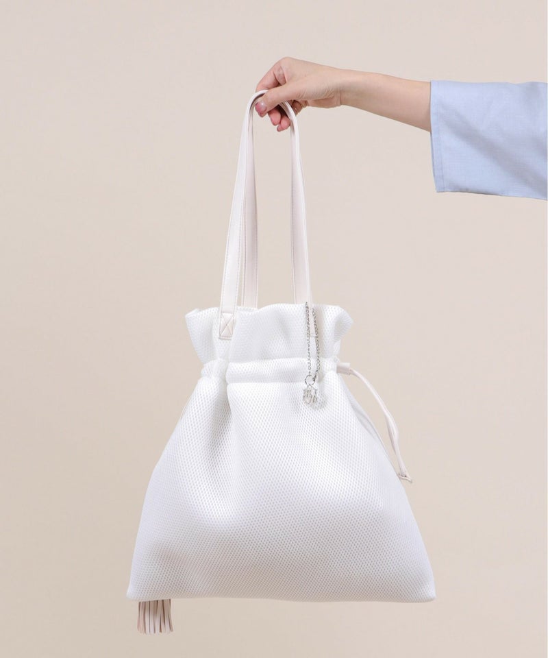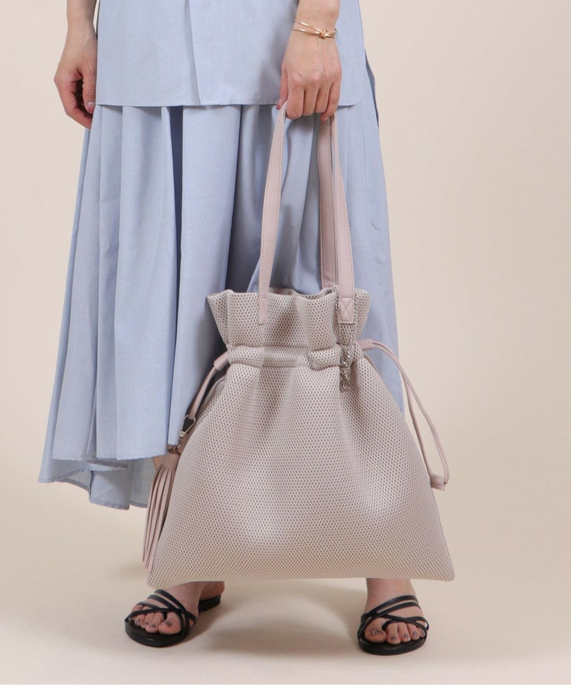 柔らかく涼しげな素材を使用した、巾着デザインのトートバッグ。