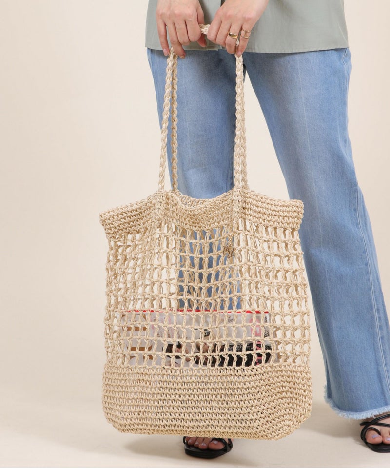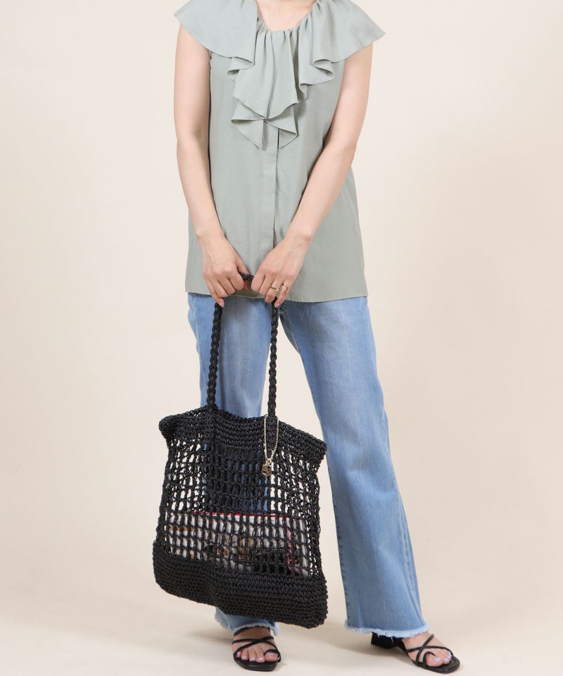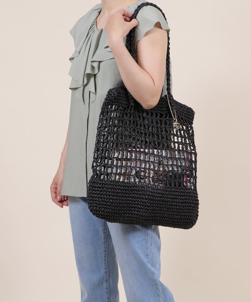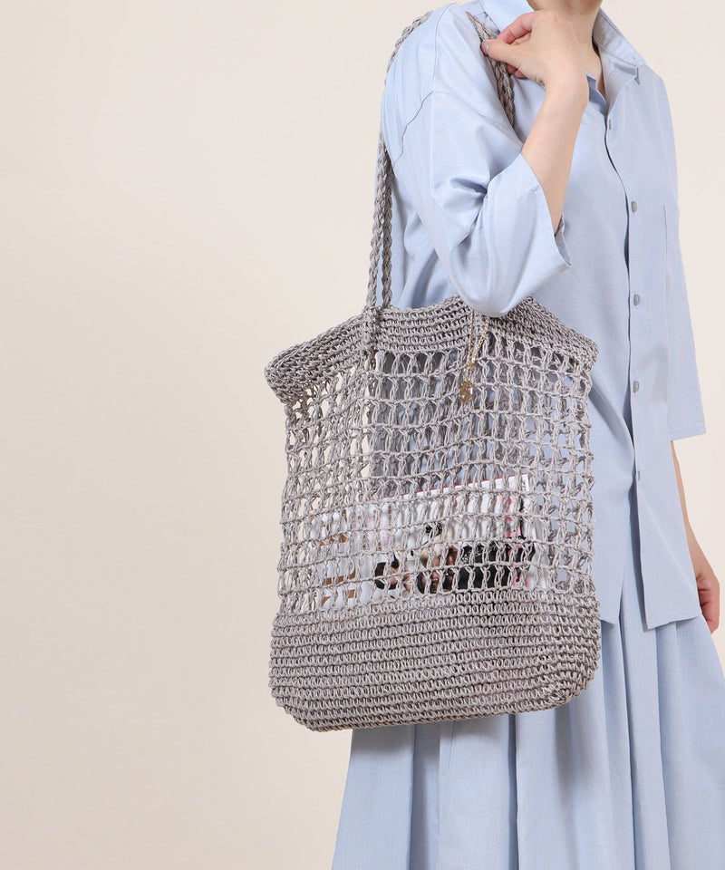 また、内側に無地や柄のインバッグ等をお好みで入れていただく事により、網目からインバッグの色や柄が透けるデザインになり荷物も透けて見えないよう、また違った印象でもお楽しみ頂けます。