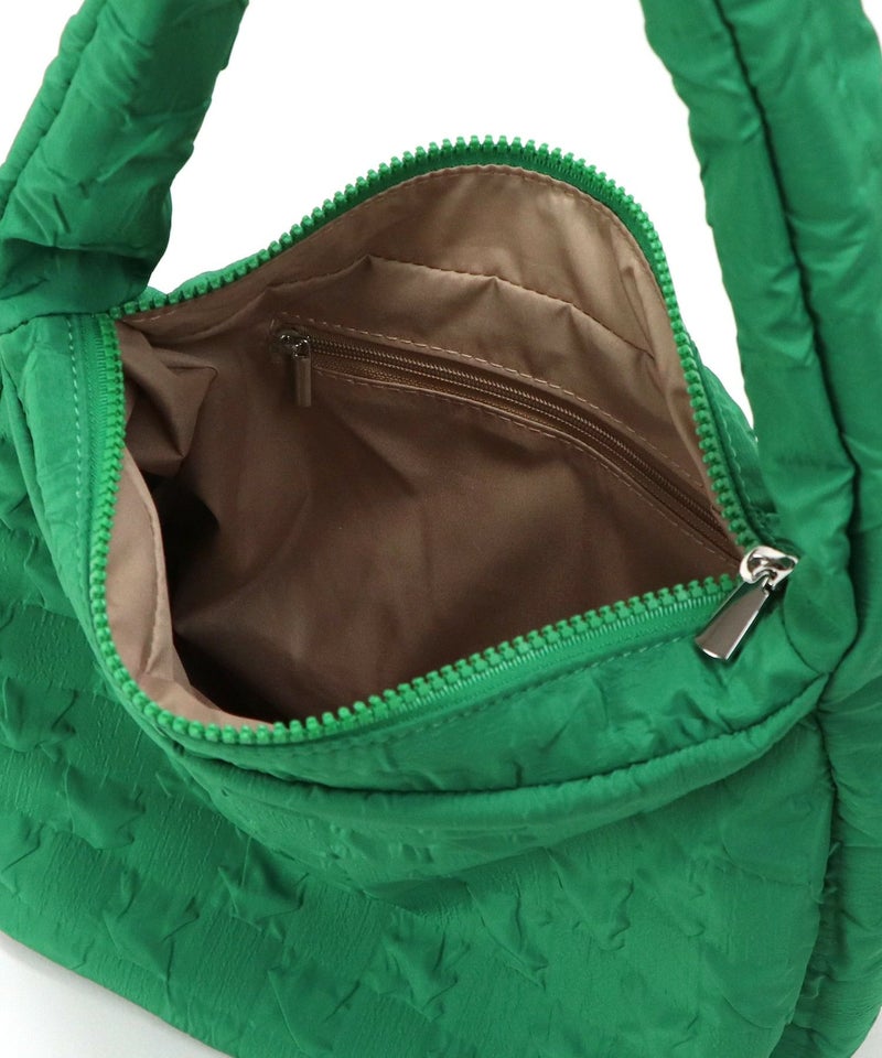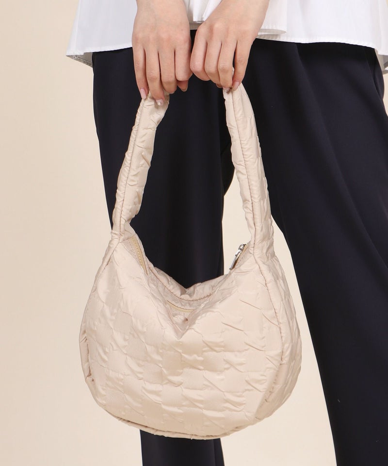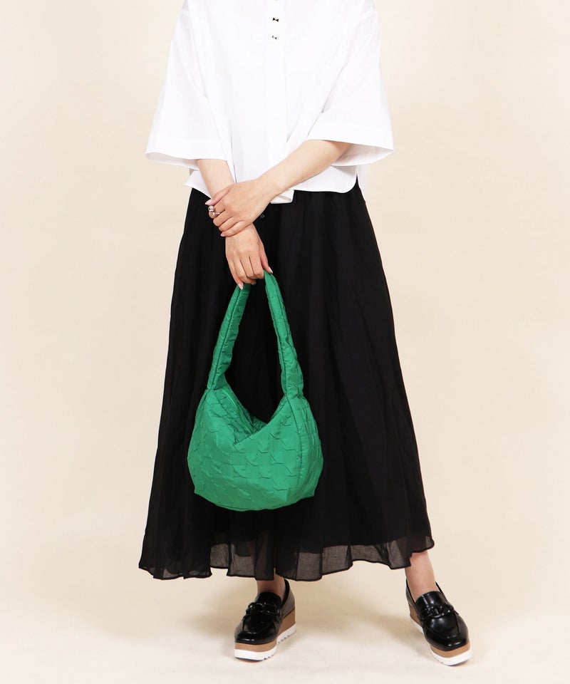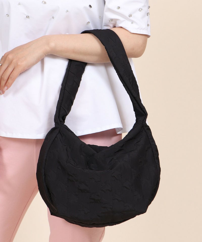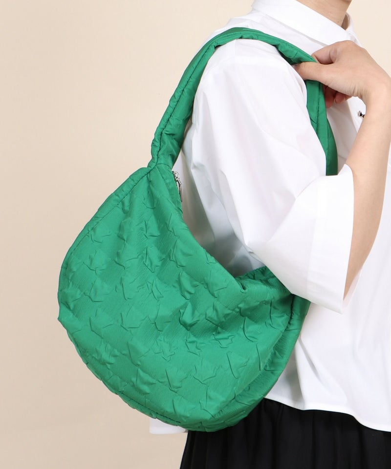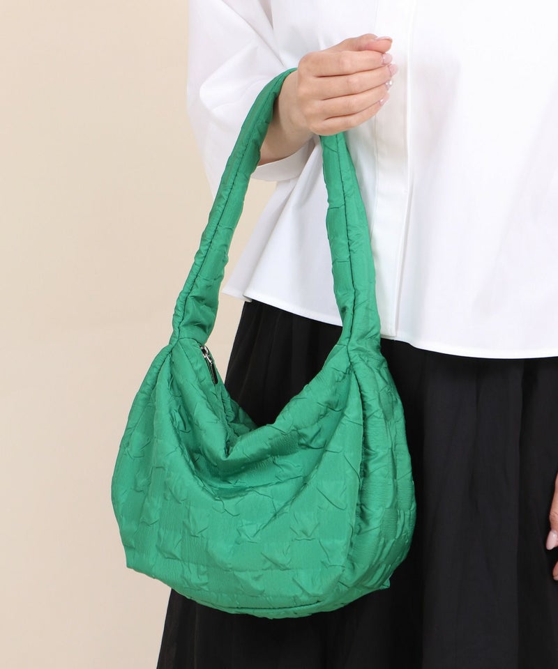 さらさらとした手触りのエンボス生地を使用したショルダーバッグ。