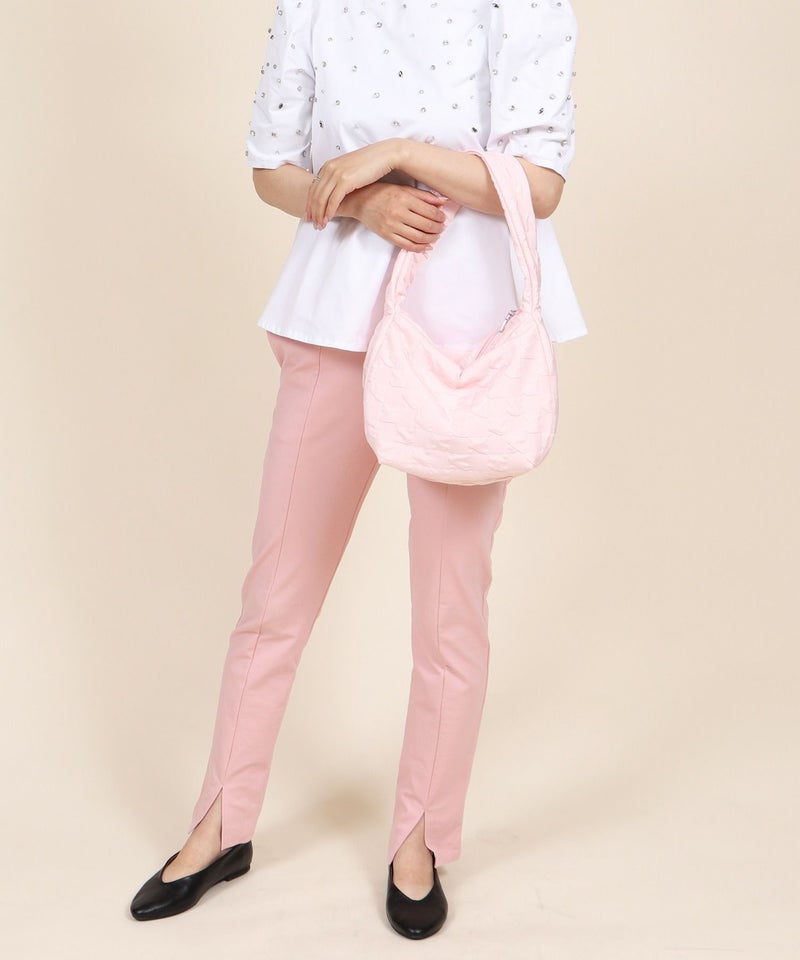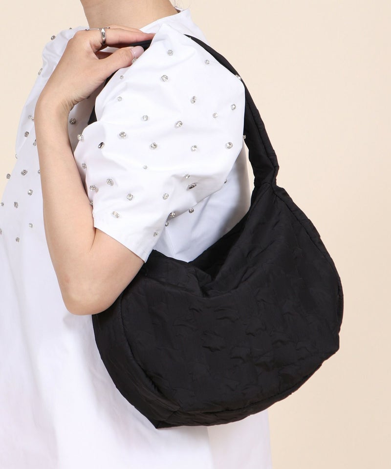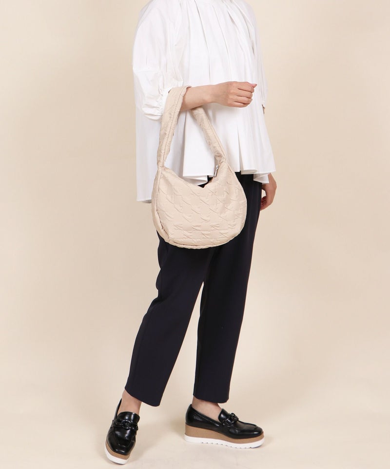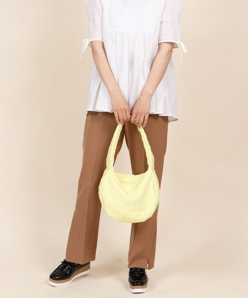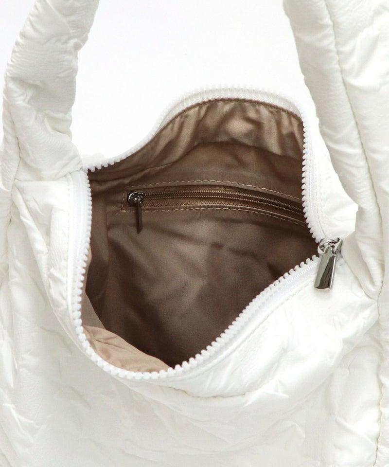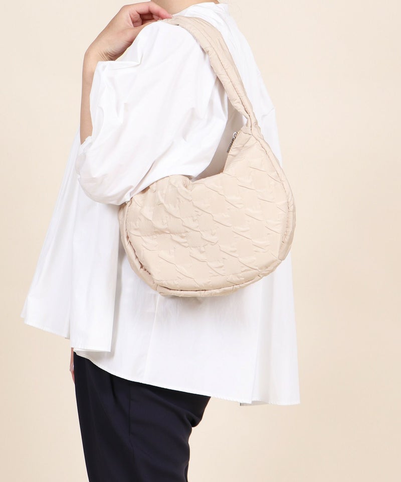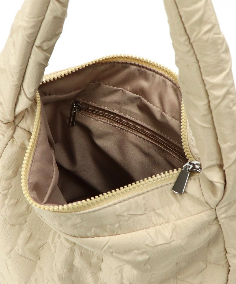 さらさらとした手触りのエンボス生地を使用したショルダーバッグ。