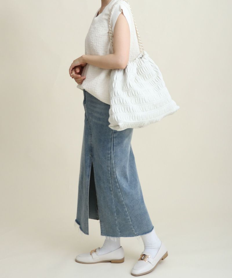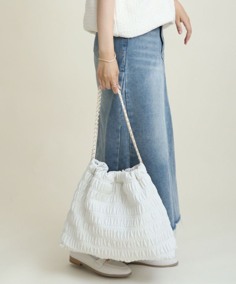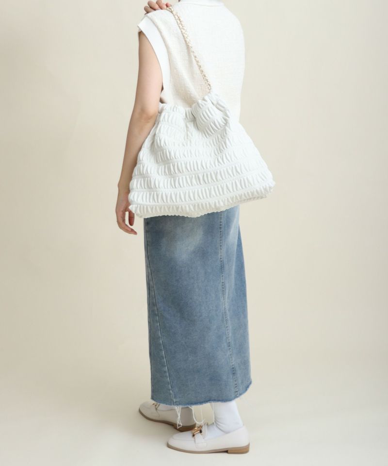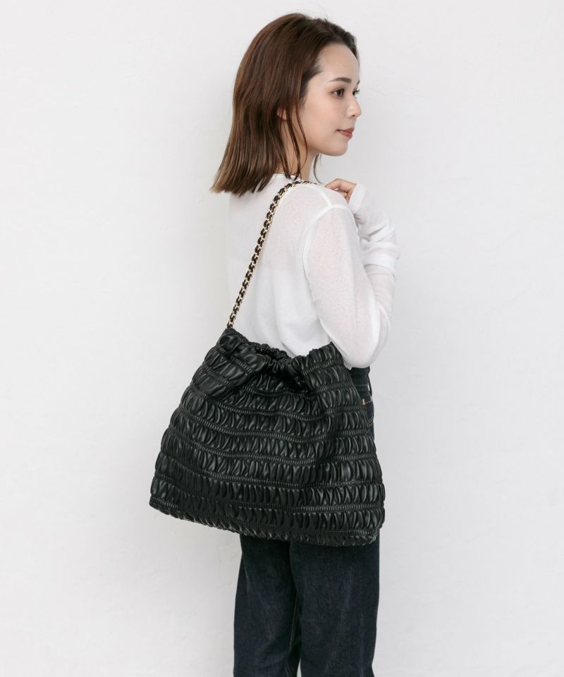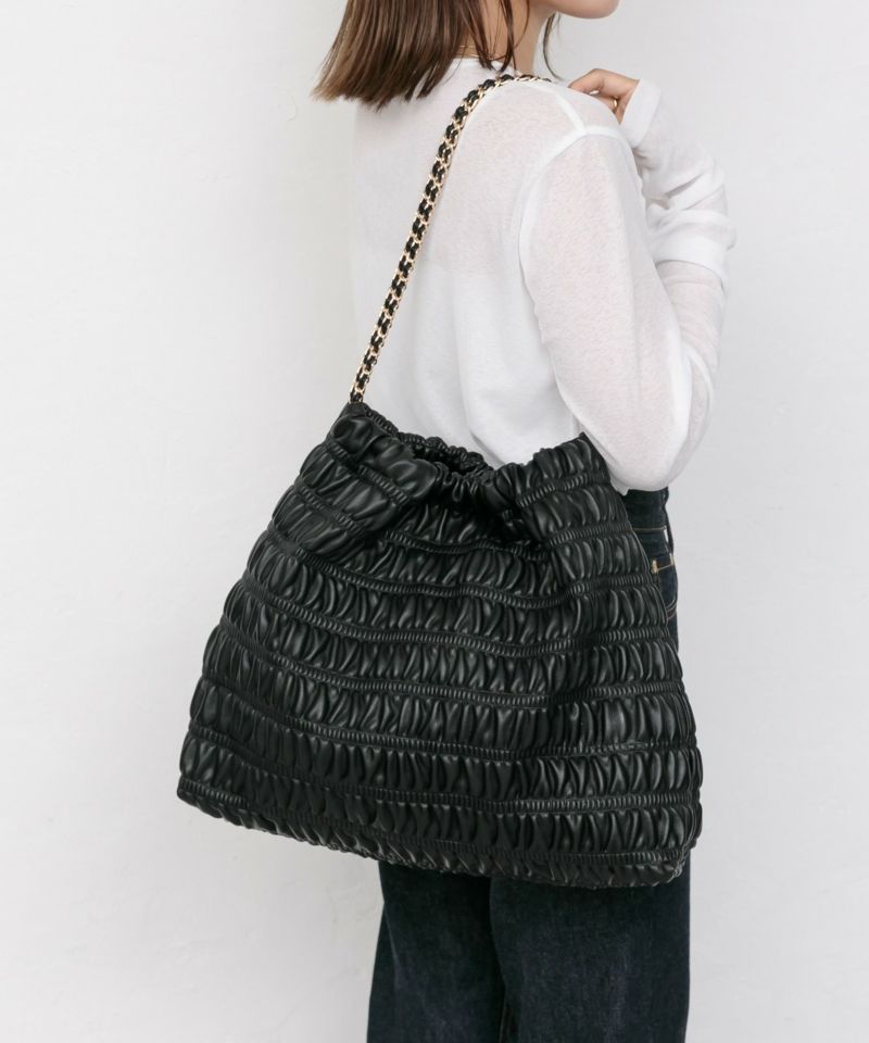 トートバッグ トート A4 A4サイズ対応 レディース BAG 大きめ 大きめバッグ かわいい 可愛い 個性的 ギャザー エンボス 柄 旅行 お出かけ 大容量 収納力 チェーンショルダー 高見え [Bermosa]A4サイズ収納可 フェイクレザー エンボス チェーンショルダーバッグ