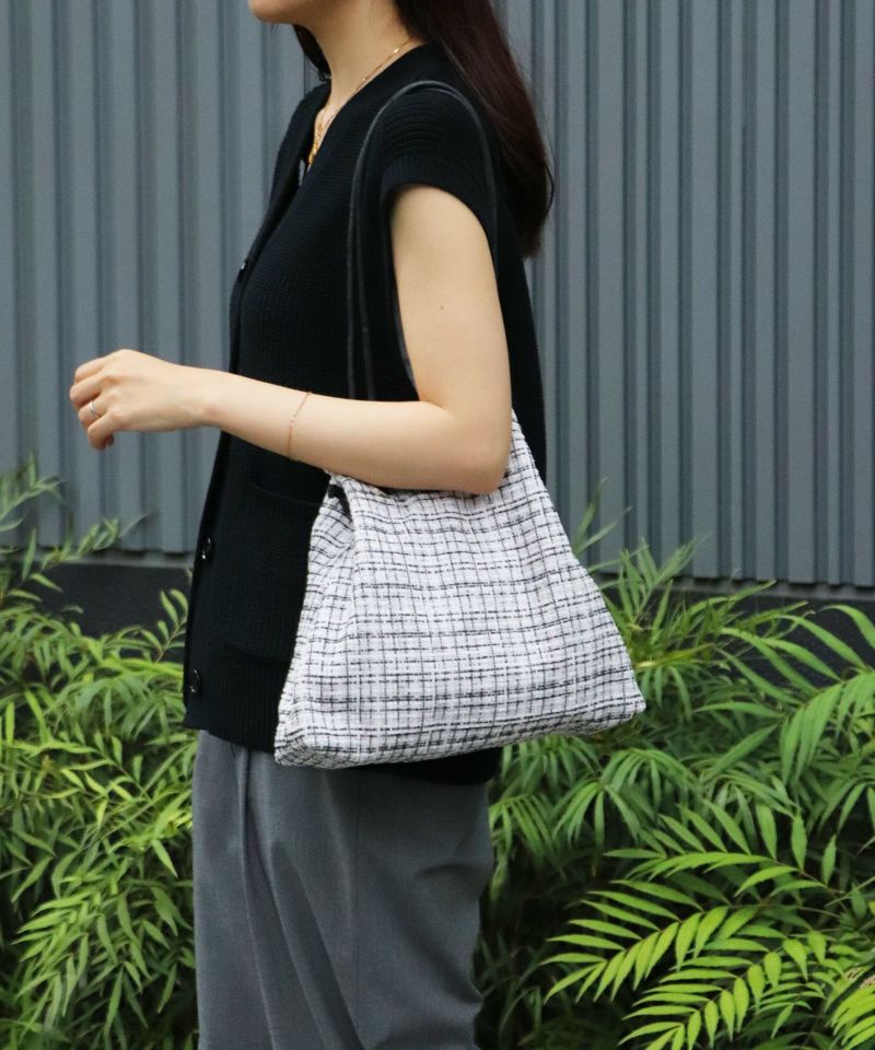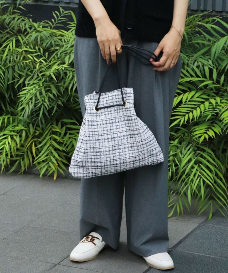 トートバッグ ツイードバッグ レディース バッグ 巾着 巾着バッグ 三角 トライアングル マチあり きれいめ 大人 手提げ トート おしゃれ 結婚式 オケージョン 軽量 肩掛け かばん 高見え [Bermosa]ツイード トライアングル型 巾着バッグ