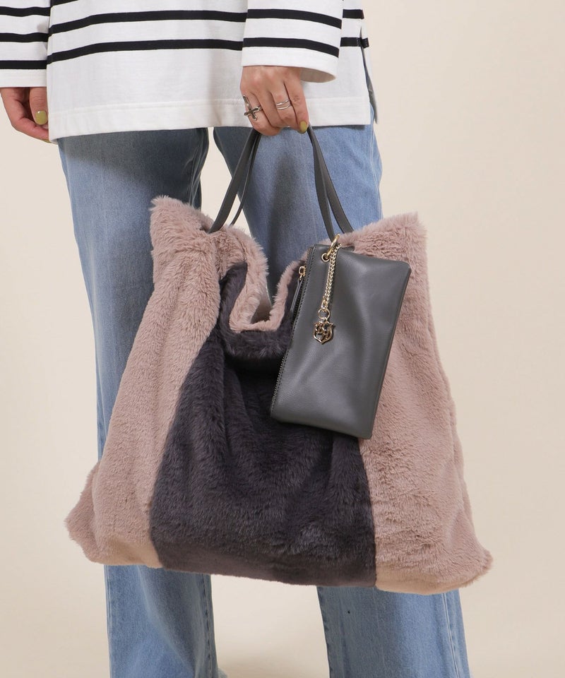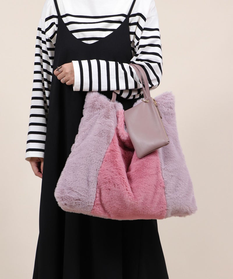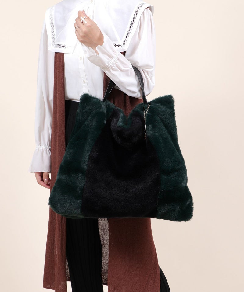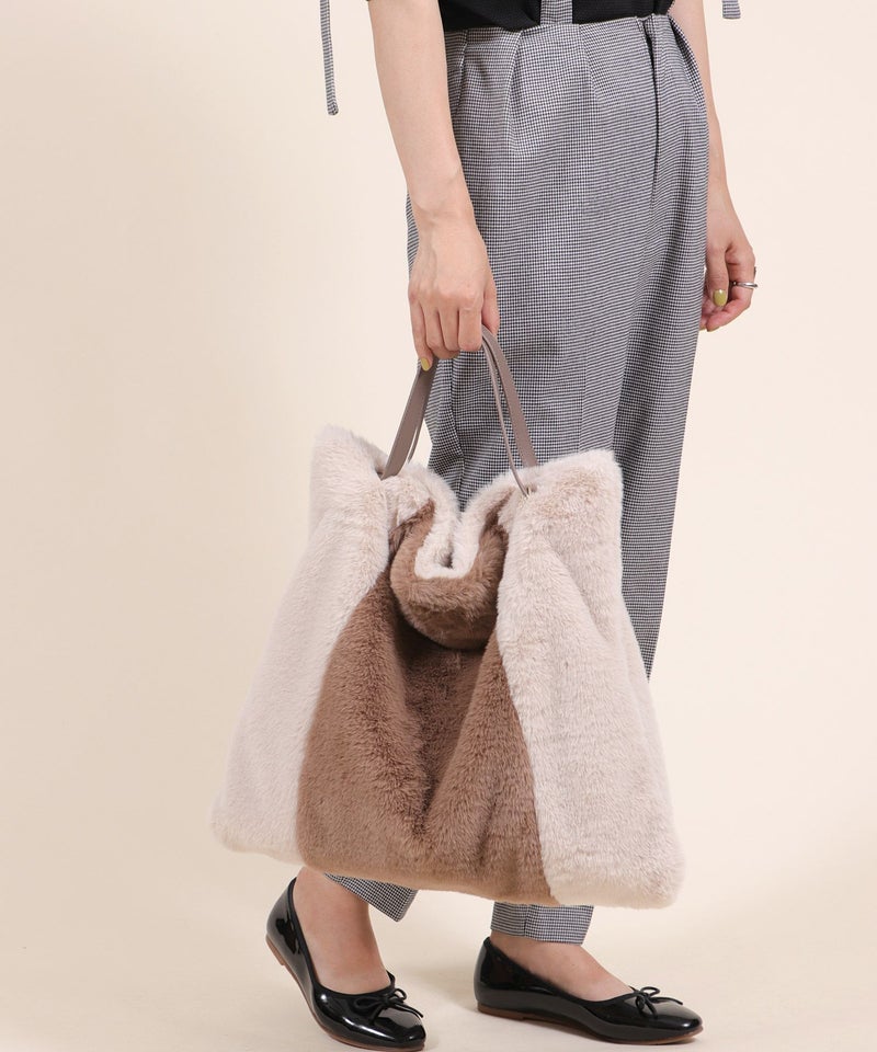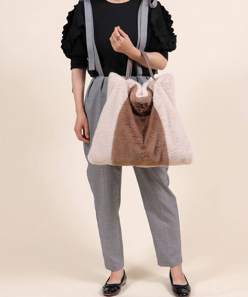 トートバッグ 大きめ A4サイズ対応 旅行 ふわふわ ファー 軽量 秋 秋冬 [Bermosa]ポーチ&チャーム付き 大きめ バイカラーファートートバッグ