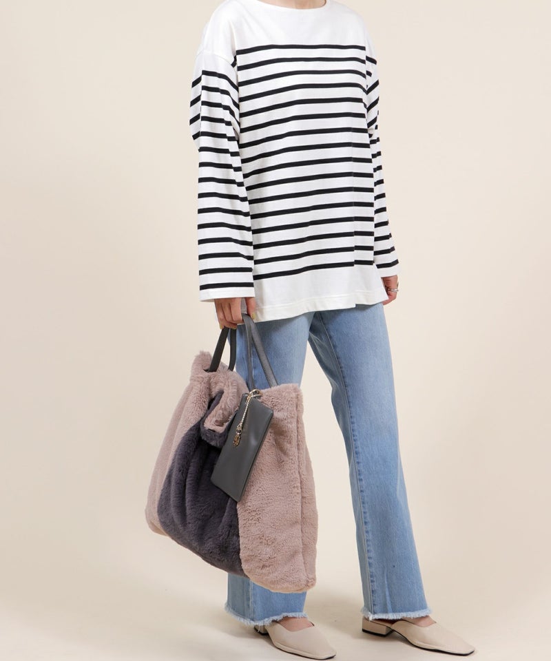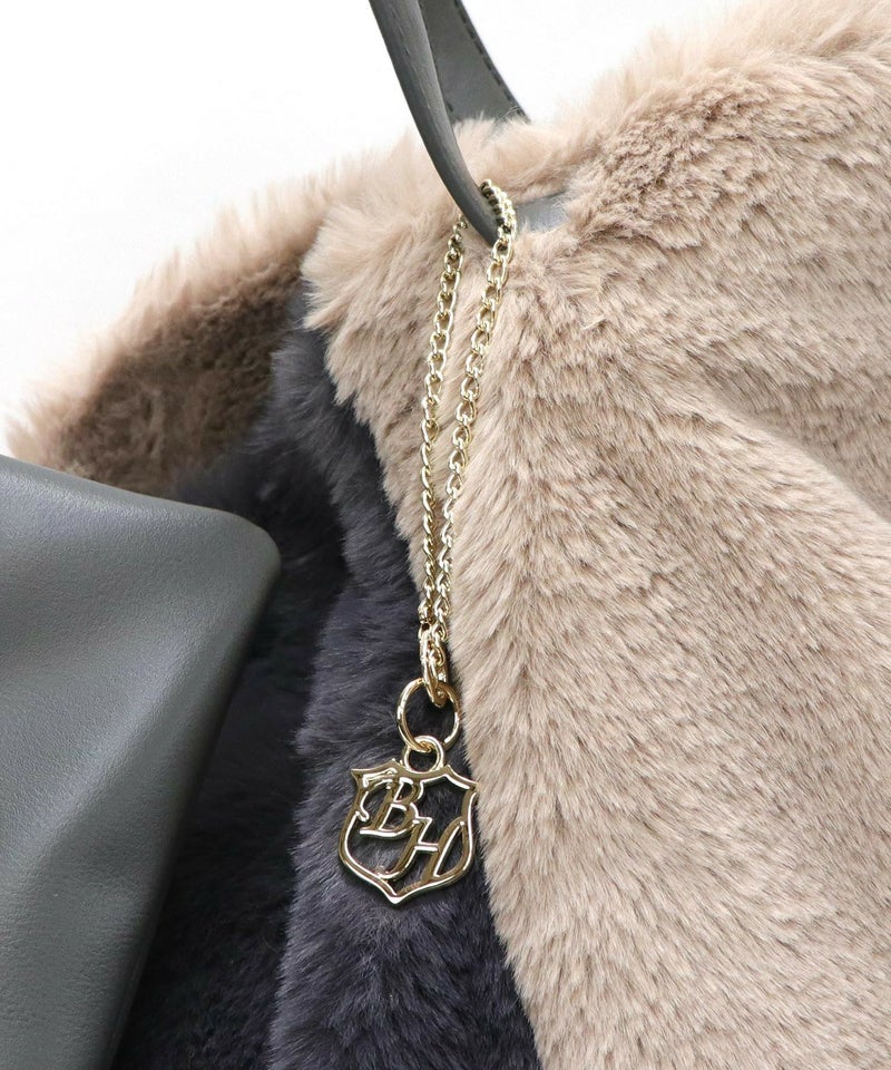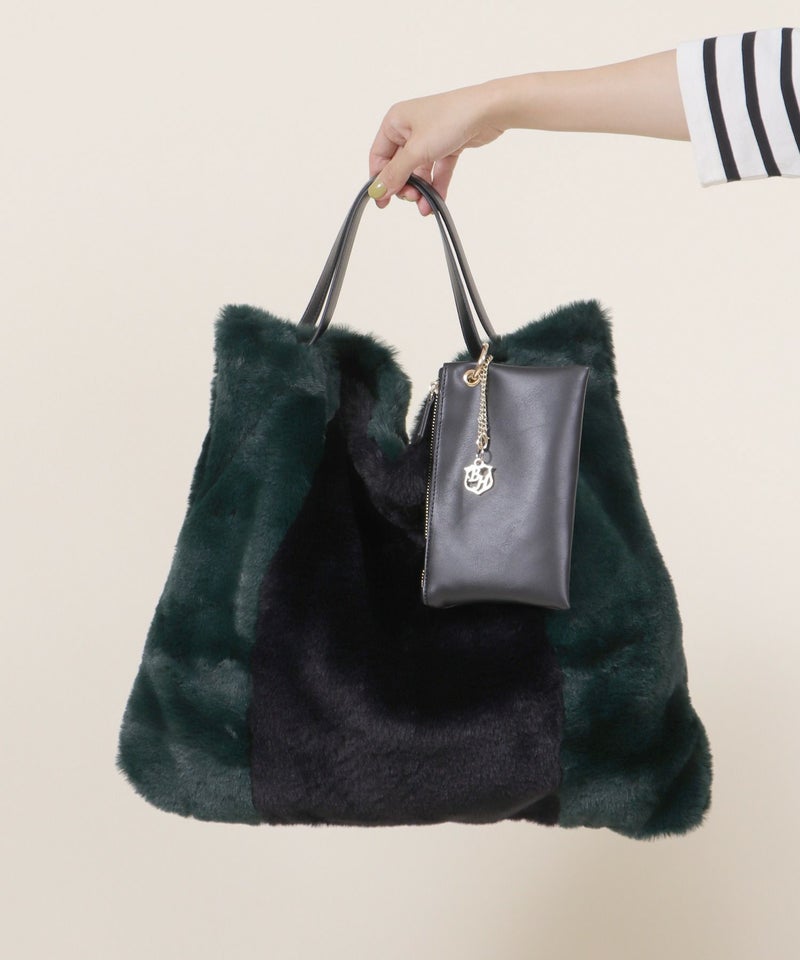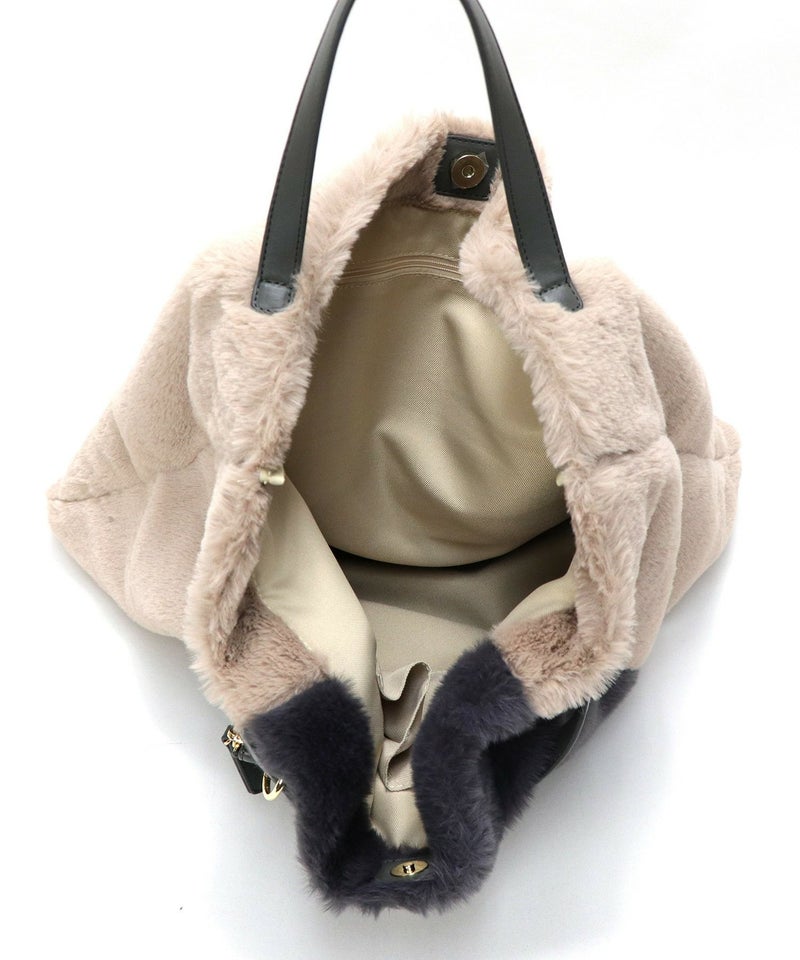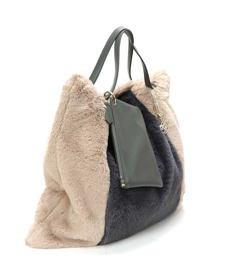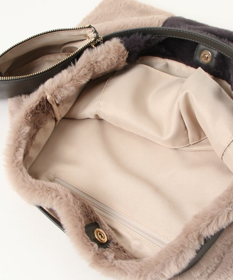 トートバッグ 大きめ A4サイズ対応 旅行 ふわふわ ファー 軽量 秋 秋冬 [Bermosa]ポーチ&チャーム付き 大きめ バイカラーファートートバッグ