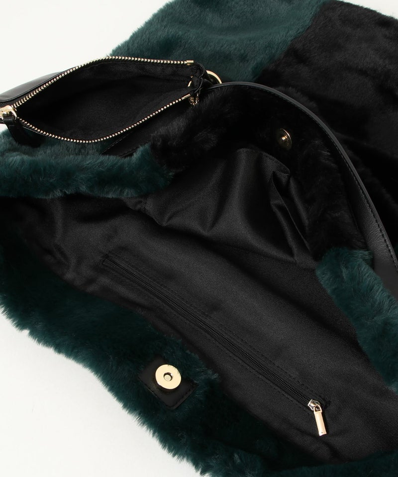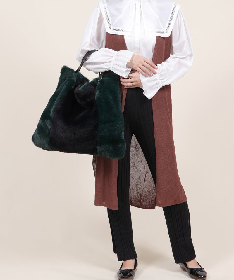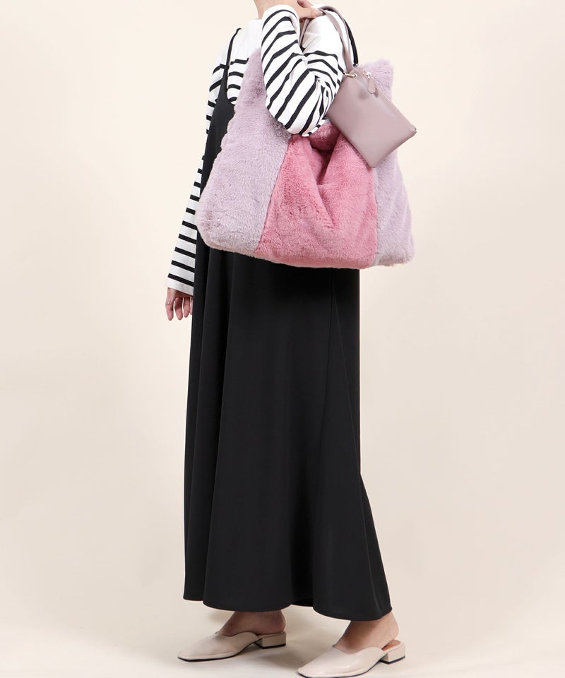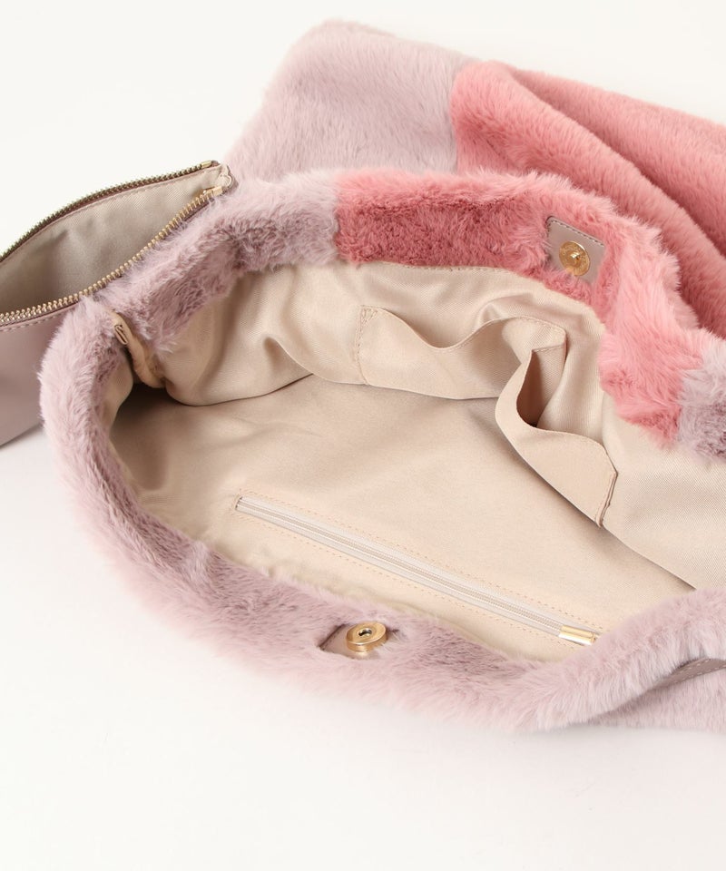 ふわふわのファー生地を使用した、大きめサイズのファーバッグ。