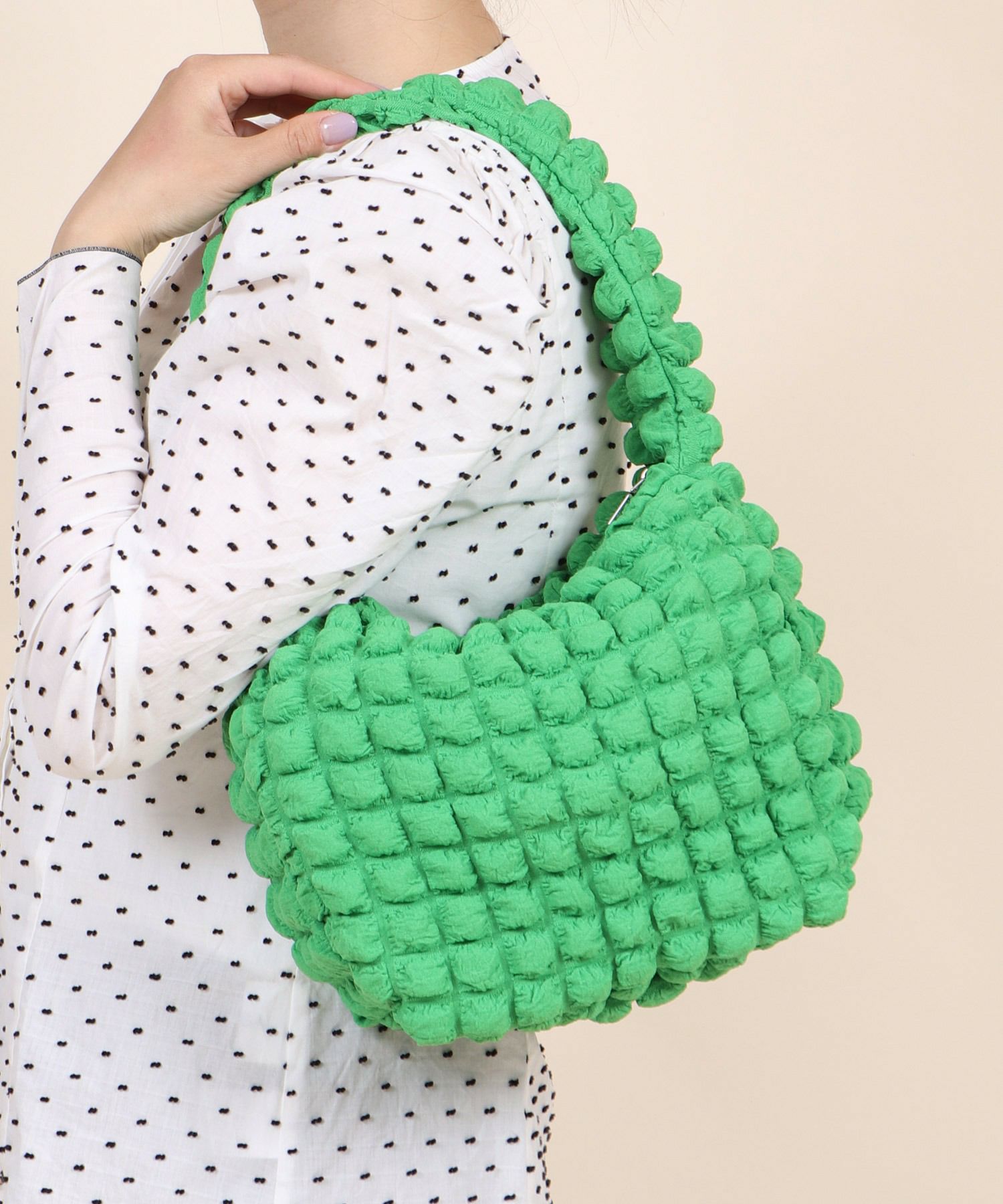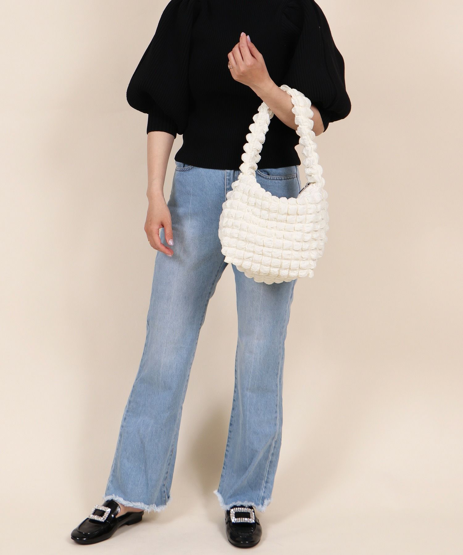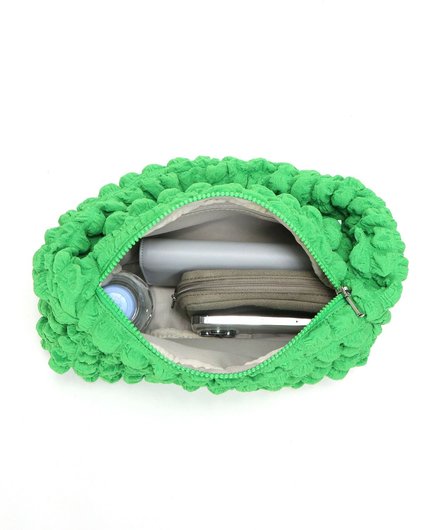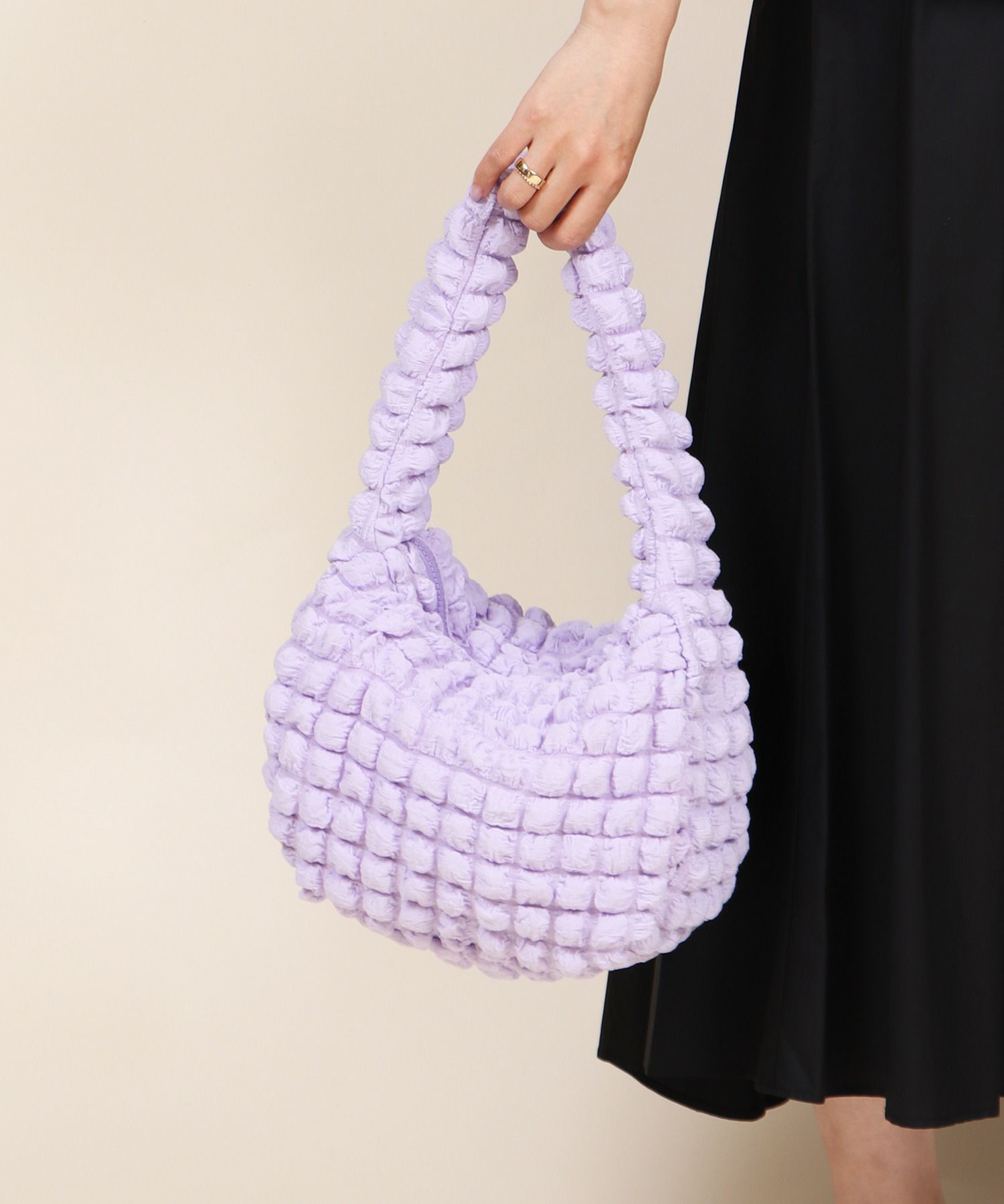 かわいいポコポコとしたポップコーン生地を全面に使用した、華やかで存在感のあるアイテム。