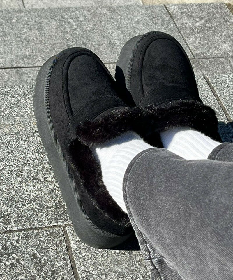 かかとまでしっかりと包んでくれるファーで歩きやすく暖かく、またトレンド感あるスタイリングにしてくれます。