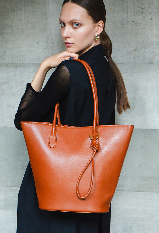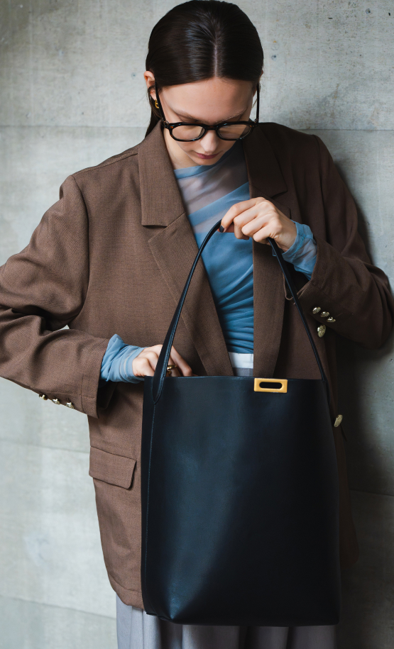 本革の高級感ある質感とゴールド金具が相性抜群で上品な印象に。大容量なので通勤通学バッグやトラベルバッグなど、デイリー使いにぴったり◎