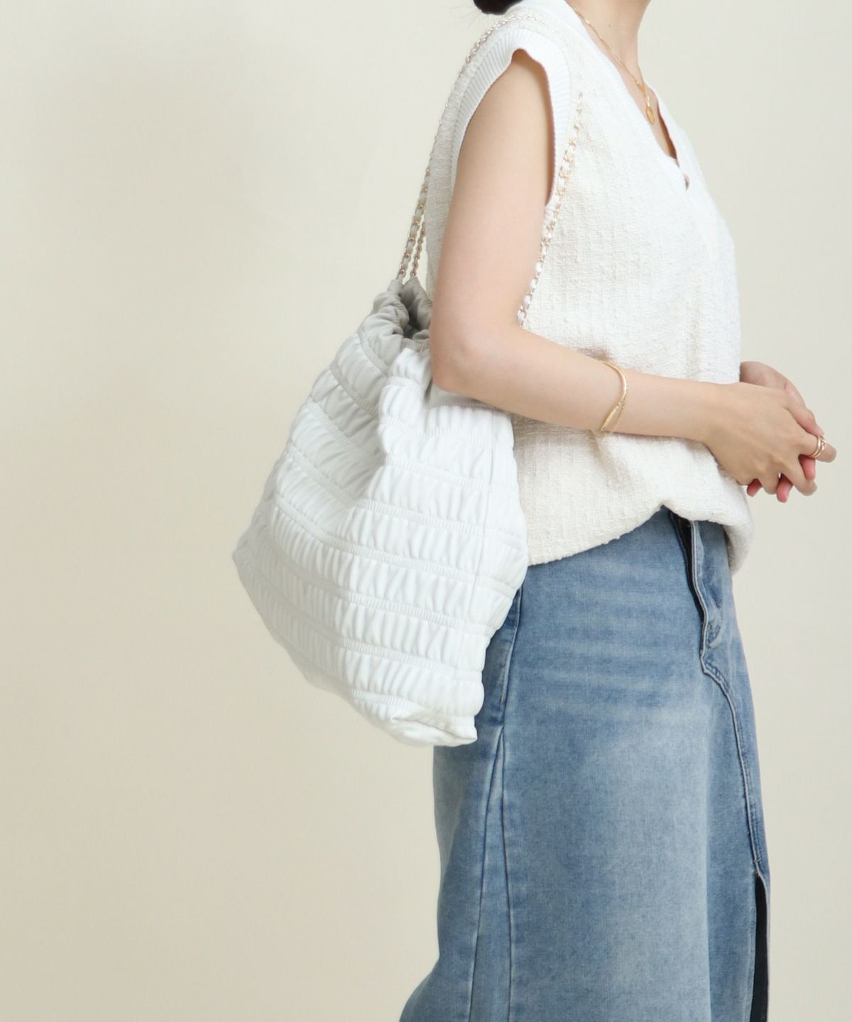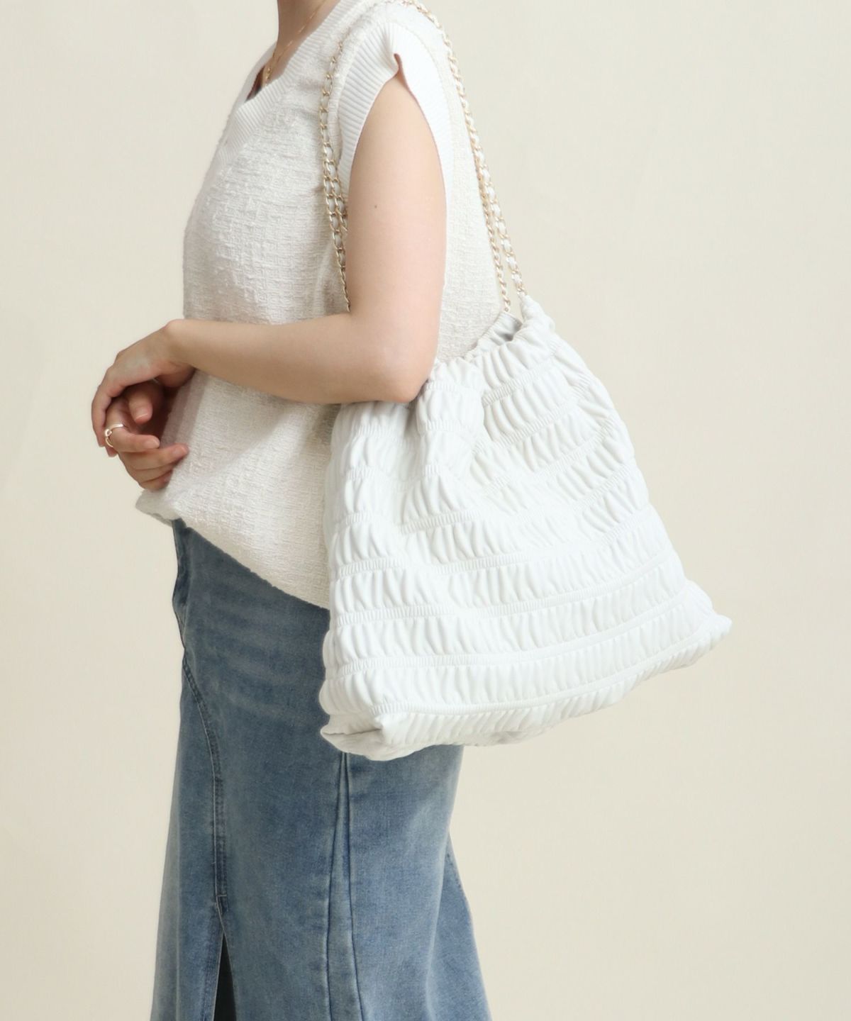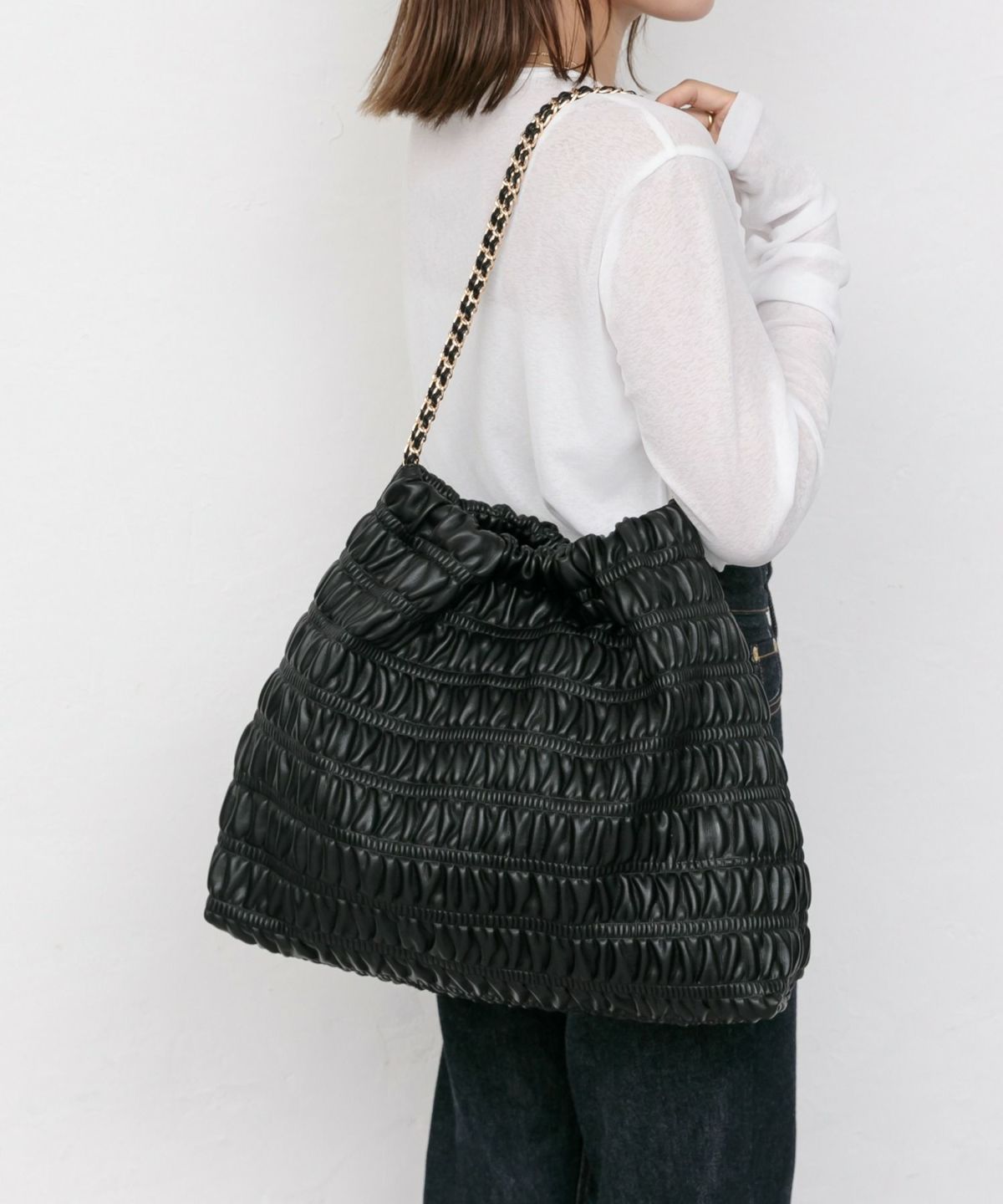 他の画像を見る トートバッグ トート A4 A4サイズ対応 レディース BAG 大きめ 大きめバッグ かわいい 可愛い 個性的 ギャザー エンボス 柄 旅行 お出かけ 大容量 収納力 チェーンショルダー 高見え [Bermosa]A4サイズ収納可 フェイクレザー エンボス チェーンショルダーバッグ 定価 ¥ 6,490 のところ 当店特別価格 ¥ 3,729 税込 在庫切れ カートに入れる